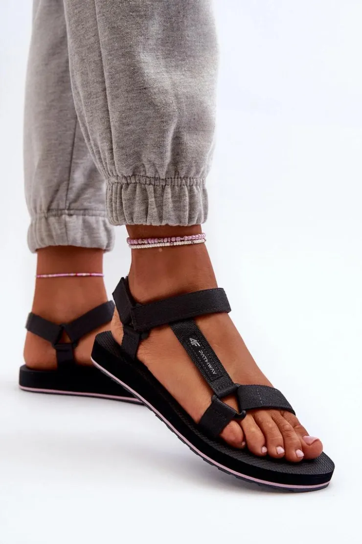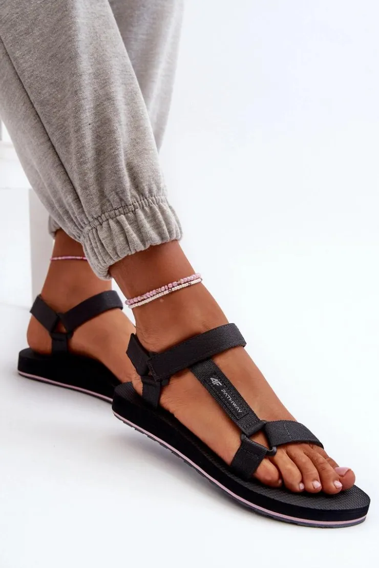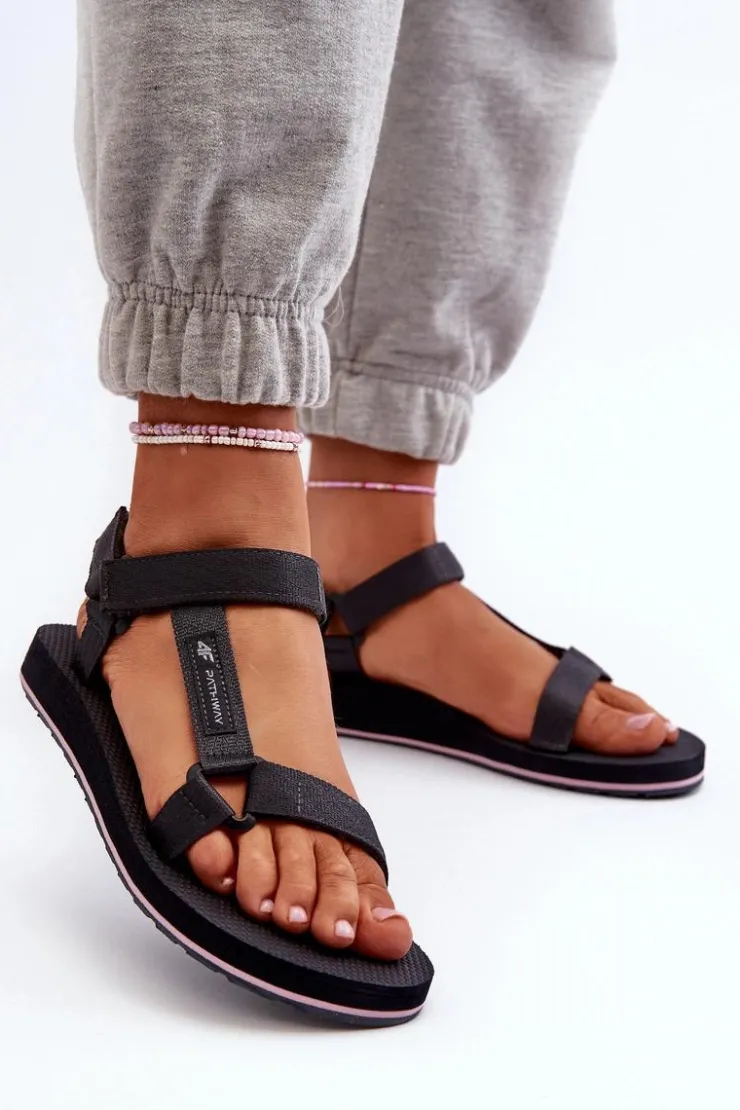 Sportowe sandały damskie marki 4F. Zapięcie paskami na rzep gwarantuje idealne dopasowanie do stopy. Podeszwa wykonana z połączenia pianki EVA z gumą zapewnia komfort i optymalną przyczepność do podłoża. Idealne zarówno na letnie spacery, jak i bardziej aktywne aktywności na świeżym powietrzu. Przy wyborze rozmiaru prosimy sugerować się tabelą rozmiarów.