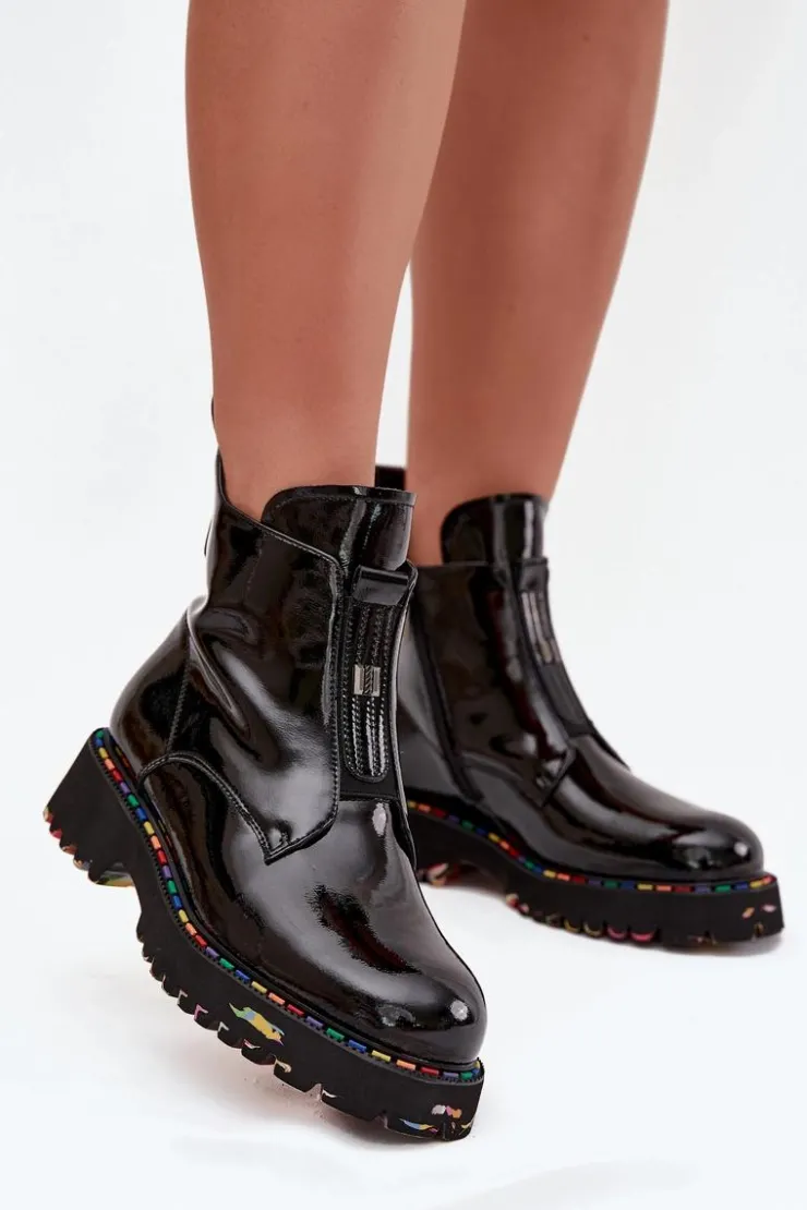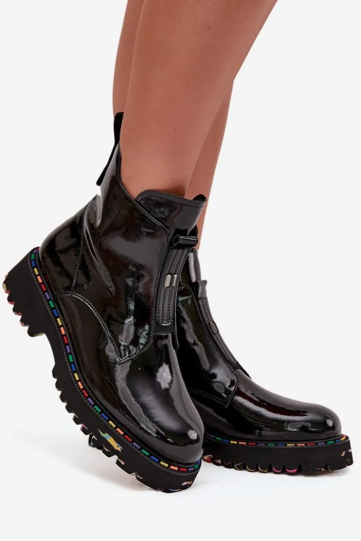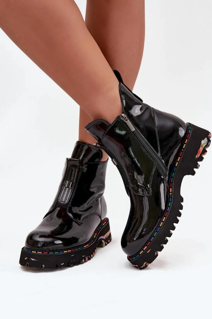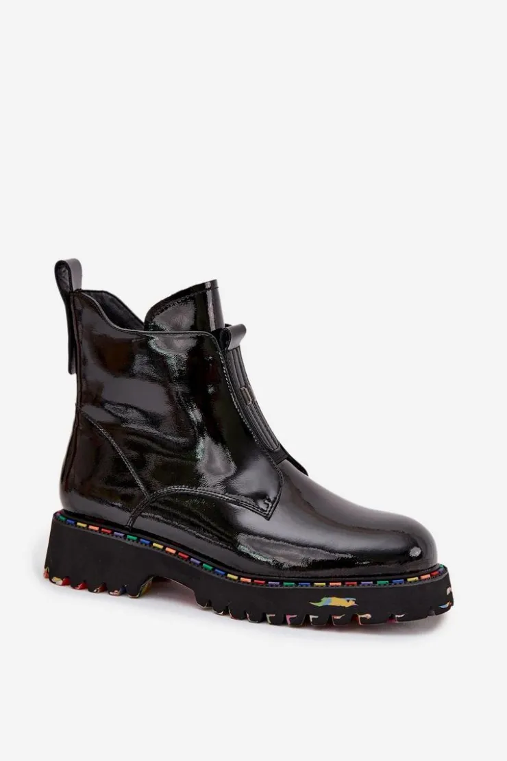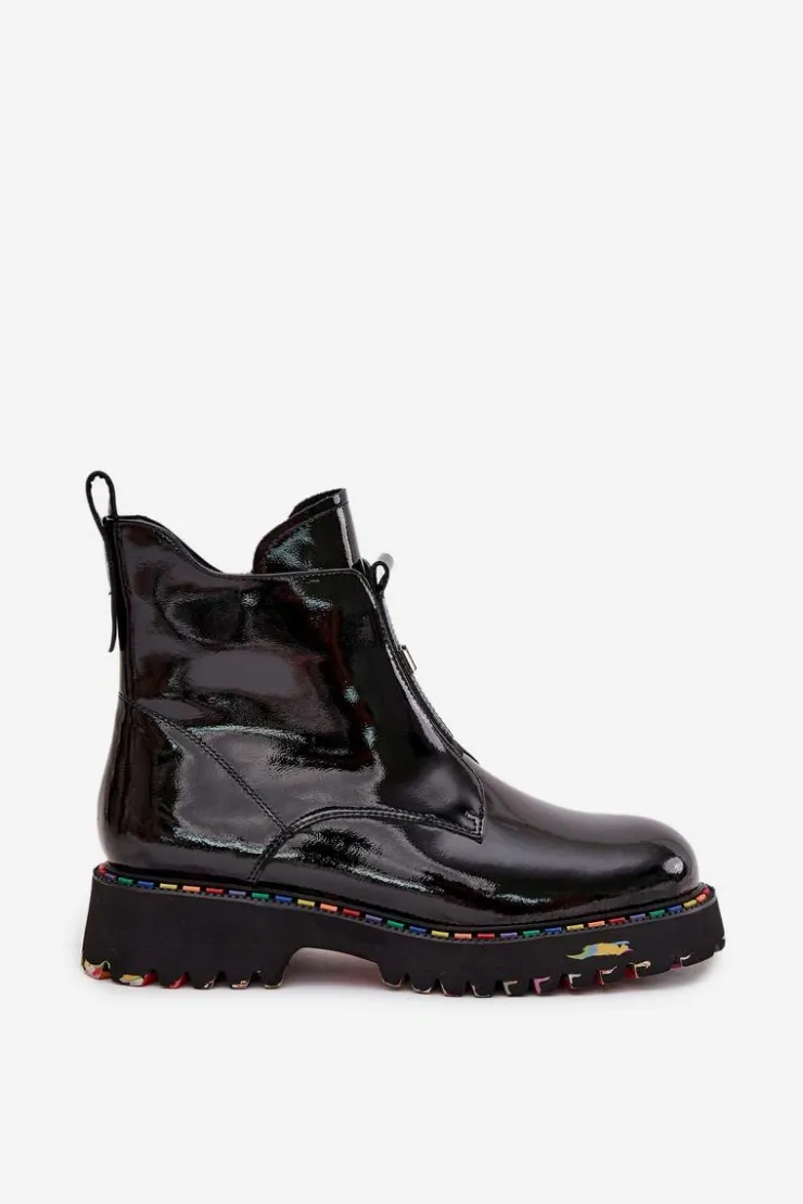 Botki damskie marki Artiker to elegancka propozycja, która łączy nowoczesny wygląd z wygodą użytkowania. Wykonane z wysokiej jakości lakierowanej skóry naturalnej, prezentują się stylowo i są wyjątkowo trwałe. Osadzone na płaskim obcasie z delikatną platformą gwarantują stabilność i komfort podczas codziennego noszenia. Model zapinany na praktyczny zamek ułatwia zakładanie i zdejmowanie, a subtelny detal umieszczony z przodu dodaje całości szykownego charakteru. Wnętrze delikatnie ocieplone miękkim w dotyku kocem obuwniczym zapewnia przyjemne ciepło, dzięki czemu buty świetnie sprawdzą się w sezonie jesienno-zimowym. To uniwersalne obuwie, które doskonale pasuje zarówno do casualowych, jak i bardziej eleganckich stylizacji. Przy wyborze rozmiaru prosimy sugerować się tabelą rozmiarów.