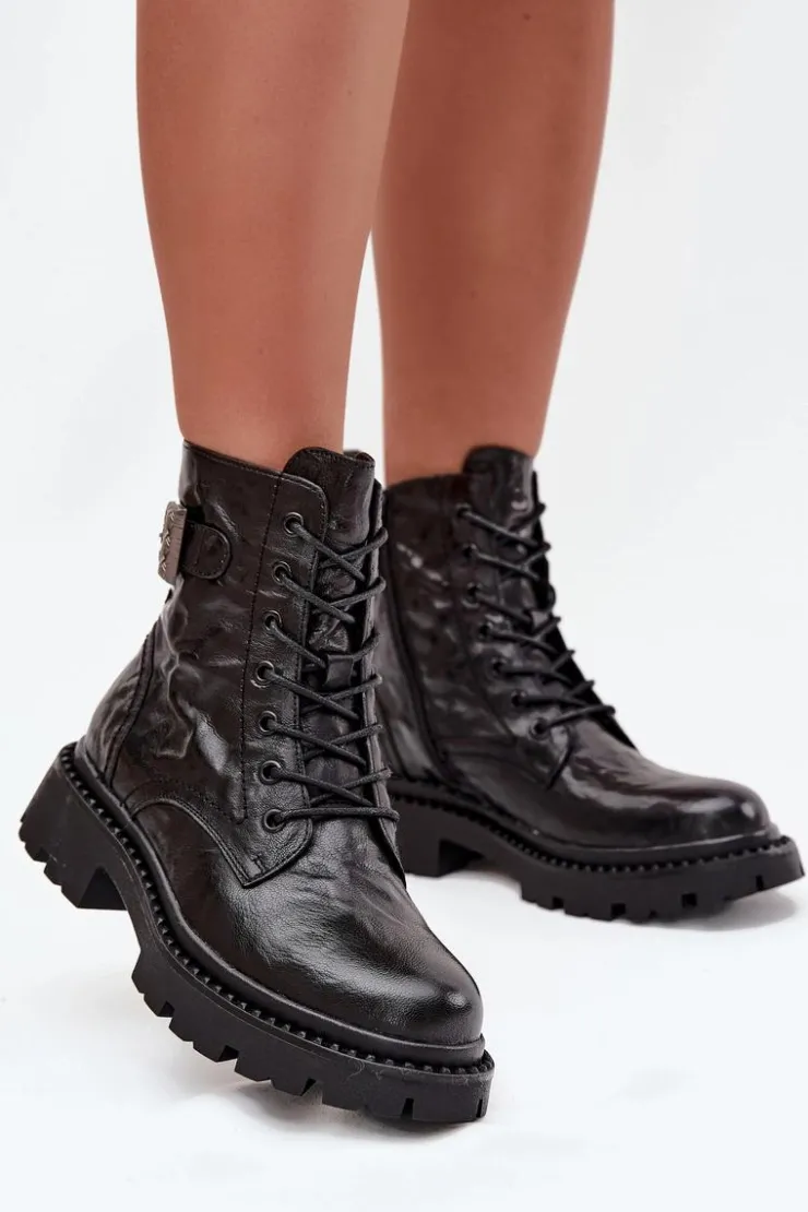 Botki damskie marki Artiker wykonane z naturalnej skóry to propozycja, która łączy elegancję z nowoczesnym wyglądem. Cholewka zdobiona efektem gniecenia nadaje obuwiu oryginalnego charakteru i sprawia, że buty wyróżniają się na tle klasycznych modeli. Dodatkowym atutem jest ozdobna klamra umieszczona w górnej części cholewki, która podkreśla wyjątkowy styl. Model zapinany na zamek jest praktyczny i wygodny w codziennym użytkowaniu, a ocieplane wnętrze gwarantuje komfort oraz ciepło w chłodniejsze dni. To botki, które świetnie sprawdzą się zarówno w codziennych stylizacjach, jak i przy bardziej eleganckich wyjściach. Przy wyborze rozmiaru prosimy sugerować się tabelą rozmiarów.