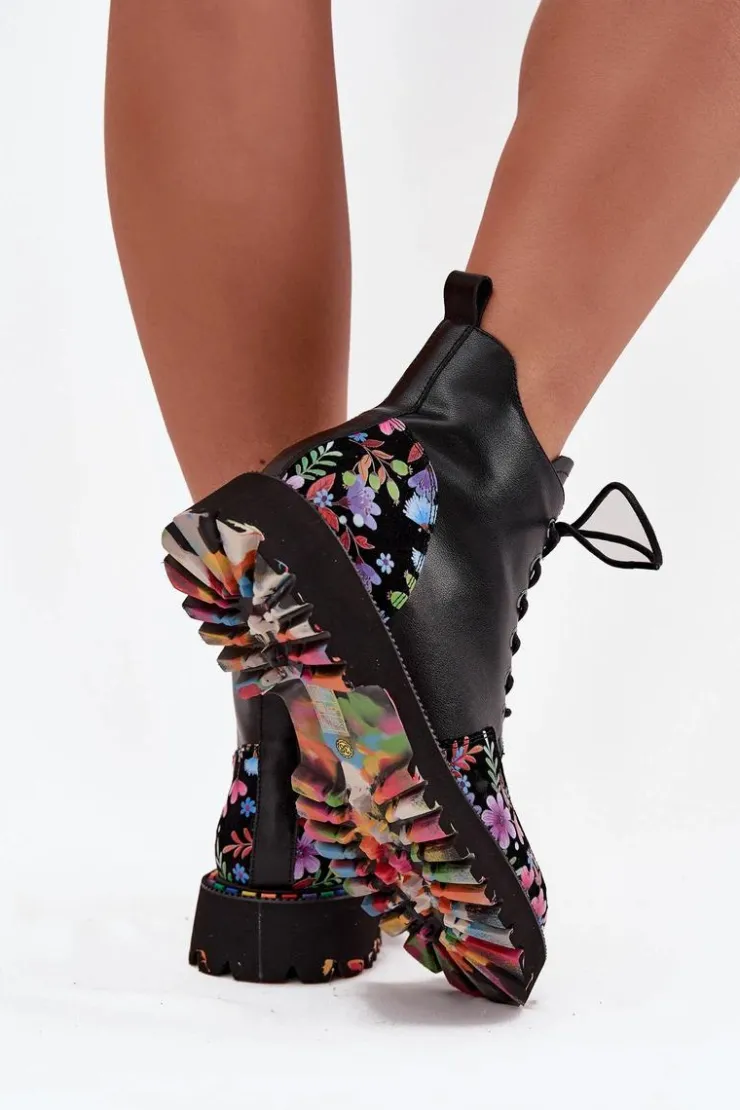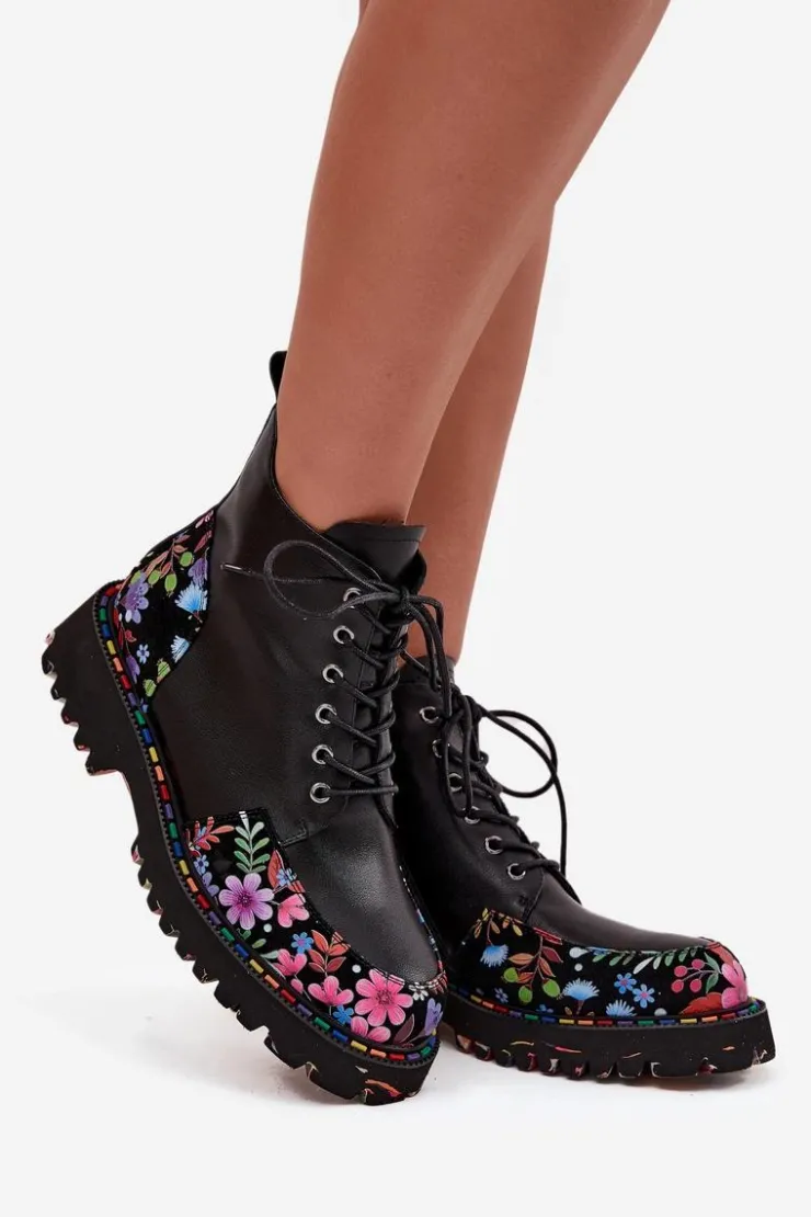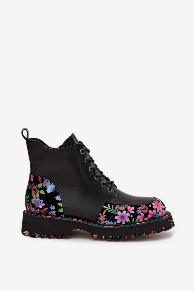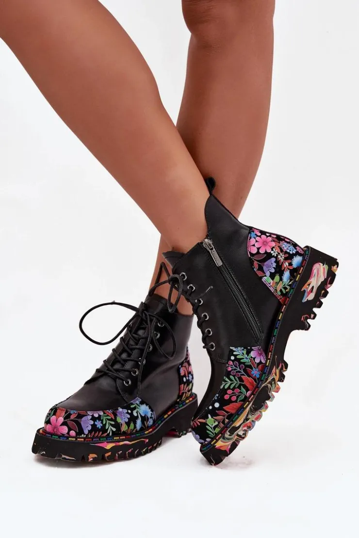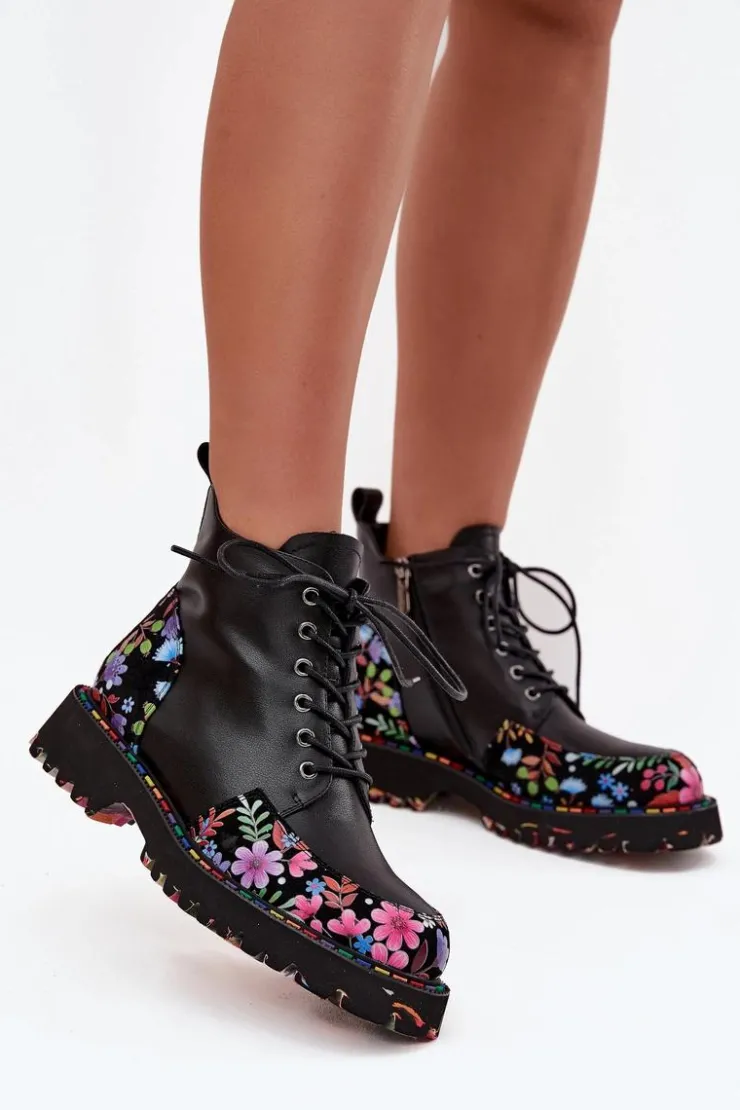 Botki damskie od marki Artiker to propozycja, która łączy wygodę z wyjątkowym, kobiecym stylem. Wykonane z wysokiej jakości naturalnej skóry, prezentują się elegancko i są trwałe, zapewniając komfort codziennego użytkowania. Model łączy klasyczne sznurowanie z praktycznym zamkiem, co umożliwia idealne dopasowanie do stopy oraz ułatwia zakładanie i zdejmowanie butów. Delikatne ocieplenie sprawia, że botki sprawdzą się także w chłodniejsze dni, zapewniając przyjemne ciepło. Całość zdobi subtelny motyw kolorowych kwiatuszków, który nadaje wyjątkowego uroku i oryginalnego charakteru, czyniąc je doskonałym uzupełnieniem zarówno casualowych, jak i bardziej kobiecych stylizacji. Przy wyborze rozmiaru prosimy sugerować się tabelą rozmiarów.
