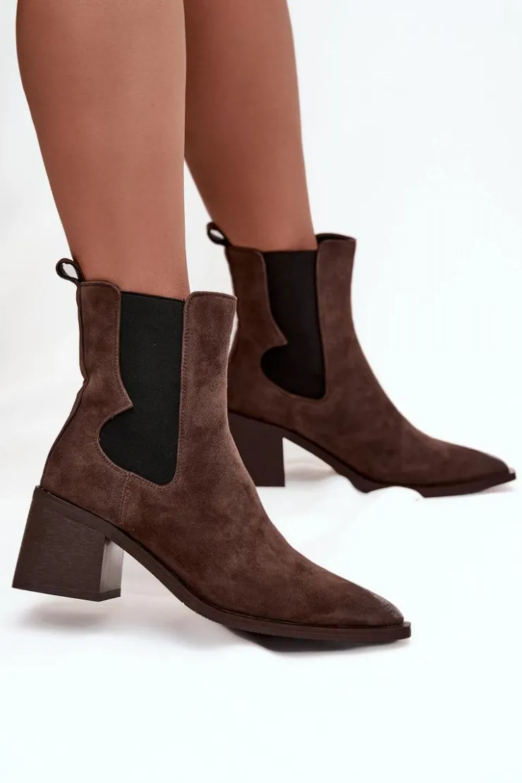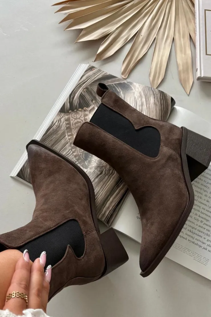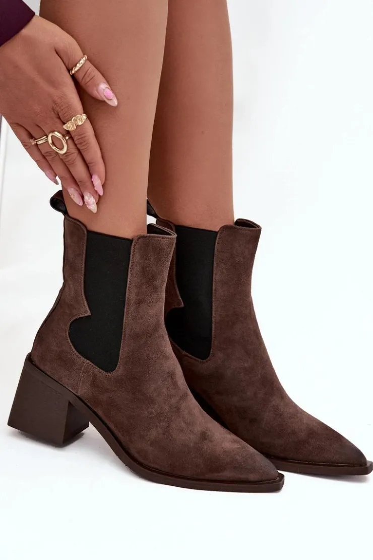 Botki damskie marki Artiker to elegancka propozycja dla kobiet ceniących styl i wygodę. Wykonane z naturalnego zamszu prezentują się niezwykle szykownie, a obcas w formie stabilnego słupka dodaje sylwetce smukłości i zapewnia komfort podczas noszenia. Szpiczaste noski podkreślają kobiecy charakter butów, a elastyczne wstawki na cholewce ułatwiają zakładanie i dopasowanie do nogi. Model wsuwany z ocieplanym wnętrzem doskonale sprawdzi się w chłodniejsze dni, łącząc praktyczność z eleganckim stylem. Przy wyborze rozmiaru prosimy sugerować się tabelą rozmiarów.