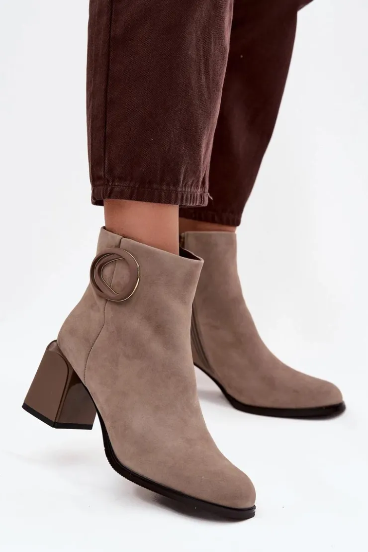 Botki damskie marki Artiker to elegancka propozycja na sezon jesienno-zimowy. Wykonane z naturalnego zamszu prezentują się szykownie i są przyjemne w dotyku, a stabilny obcas typu słupek gwarantuje wygodę oraz pewność kroku. Zaokrąglone noski. Zapięcie na zamek ułatwia zakładanie i zdejmowanie. Wnętrze zostało ocieplone. Dodatkowym atutem jest ozdobny detal umieszczony z boku cholewki, który podkreśla wyjątkowy charakter tego modelu. Przy wyborze rozmiaru prosimy sugerować się tabelą rozmiarów.