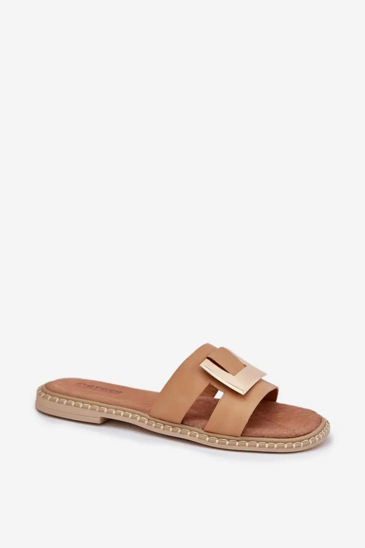 Damskie klapki od marki Artiker stanowią idealny wybór na upalne dni. Umieszczone na płaskim obcasie, gwarantują komfort przez cały dzień. Z przodu znajduje się ozdobny element. Miękka wkładka wykonana z naturalnej skóry gwarantuje wygodę i idealne dopasowanie do stopy. Elegancki fason sprawia, że doskonale pasują do różnych stylizacji, zarówno na co dzień, jak i na bardziej formalne wyjścia. Przy wyborze rozmiaru prosimy sugerować się tabelą rozmiarów.