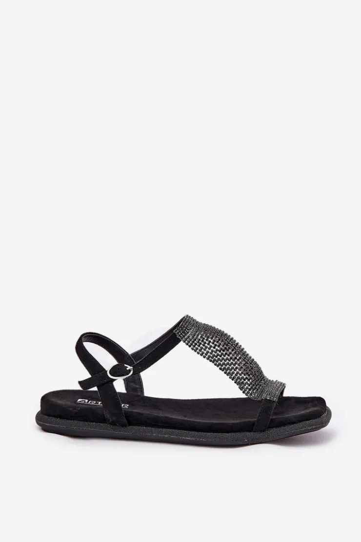 Eleganckie płaskie sandały damskie to perfekcyjny wybór na wyjątkowe okazje. Zapinane na sprzączkę z regulowanym paskiem, zapewniają idealne dopasowanie do stopy. Model wyróżnia się efektownym paskiem ozdobionym kryształkami, które dodają im szyku i blasku. Miękka, eko skórzana wkładka gwarantuje komfort przez cały dzień. Te sandały będą doskonałym uzupełnieniem eleganckich stylizacji na uroczystości i wieczorne wyjścia. Przy wyborze rozmiaru prosimy sugerować się tabelą rozmiarów.