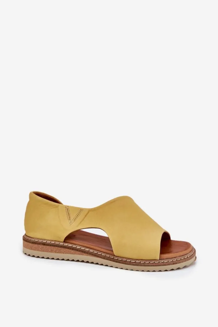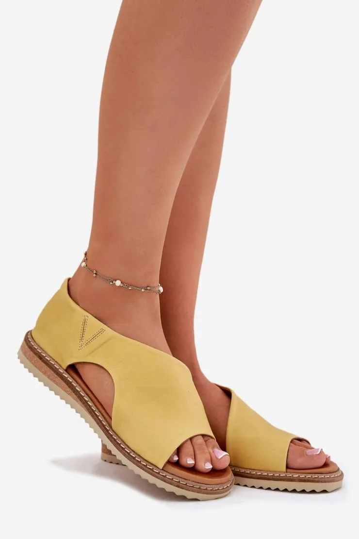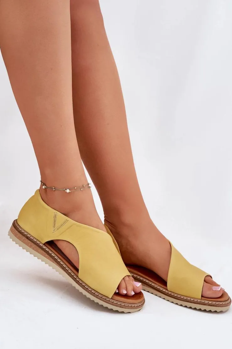 Artiker Sandały Płaskie*Skórzane Sandały Damskie 46C1015 Żółte Żółty