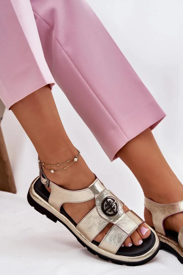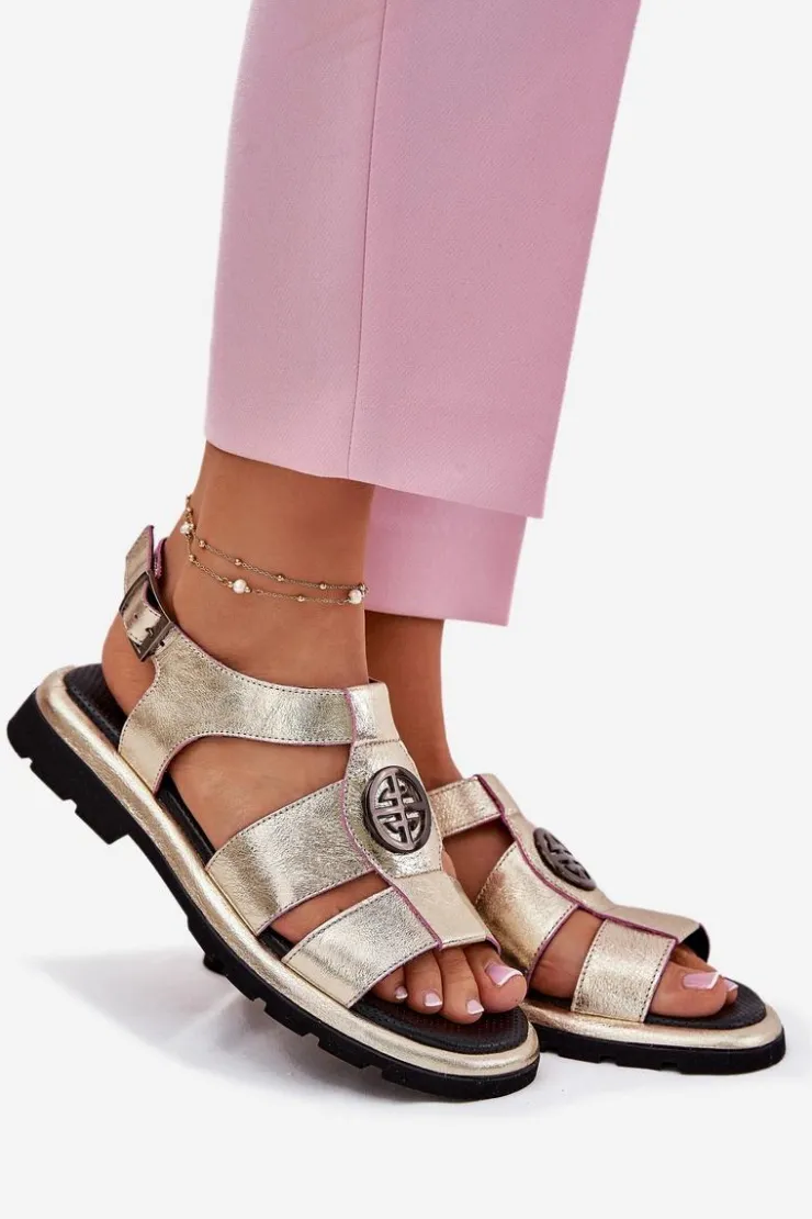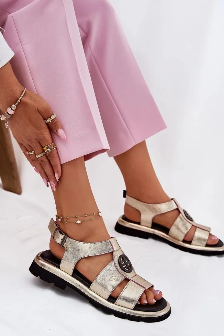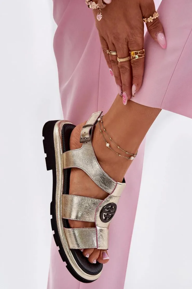 Sandały damskie z naturalnej skóry to połączenie stylu i elegancji, które idealnie sprawdzi się w letnich stylizacjach. Model wyróżnia się subtelnym ozdobnym detalem z przodu, który dodaje im wyjątkowego charakteru. Sandały zapinane są na klamrę z regulowanym paskiem, co zapewnia komfort i doskonałe dopasowanie do stopy. To idealna propozycja dla kobiet szukających zarówno klasycznego, jak i modnego obuwia na ciepłe dni. Przy wyborze rozmiaru prosimy sugerować się tabelą rozmiarów.
