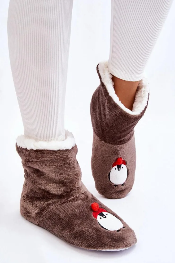 Idealne papcie damskie dla każdego zmarzlucha! Zostały wykonane z miękkiego materiału tekstylnego. Wewnątrz posiadają ocieplenie w postaci miękkiego kożuszka. Podeszwa z gumowego tworzywa z wypustkami jest antypoślizgowa. Papcie te świetnie izolują przed zimnem. Niezwykle wygodne i komfortowe podczas użytkowania. Ozdobione z przodu uroczym pingwinkiem. Przy wyborze rozmiaru prosimy kierować tabelą rozmiarów.