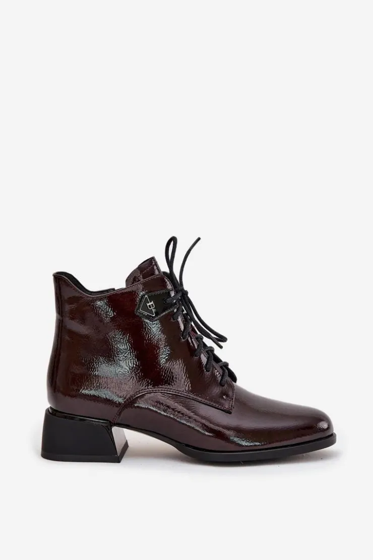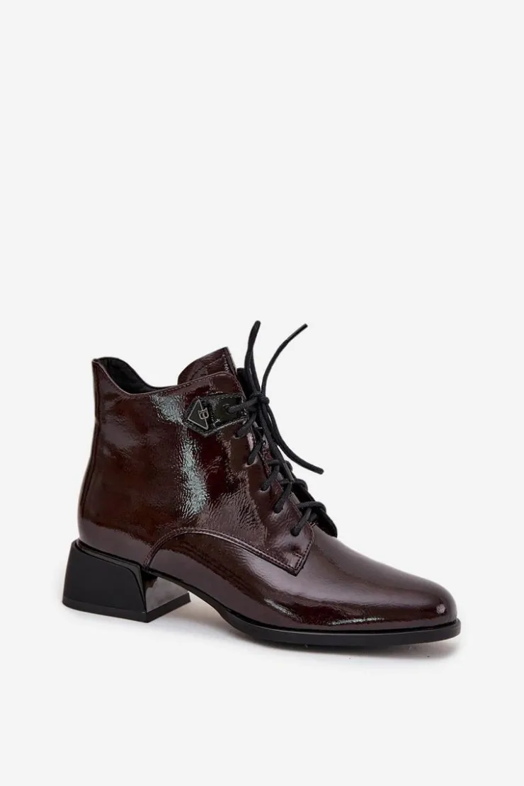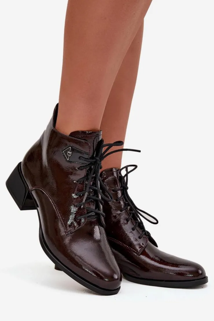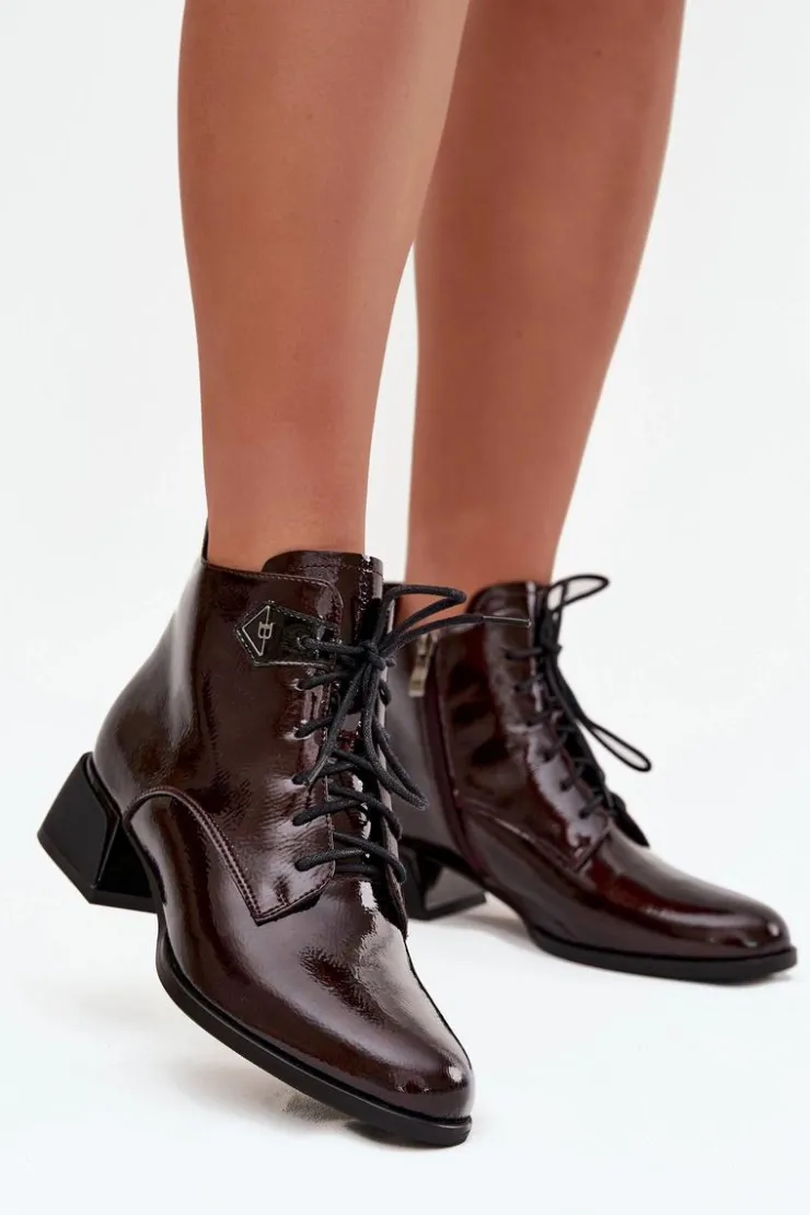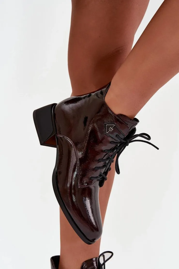 Botki damskie marki Artiker wykonane z lakierowanej skóry naturalnej to elegancka propozycja na co dzień. Osadzone na niskim obcasie typu klocek zapewniają wygodę, a dzięki połączeniu sznurowania i zamka są praktyczne i łatwe w zakładaniu. Wnętrze delikatnie ocieplane kocem obuwniczym gwarantuje komfort w chłodniejsze dni. Staranność wykonania i połysk skóry nadają szykownego charakteru. Przy wyborze rozmiaru prosimy sugerować się tabelą rozmiarów.