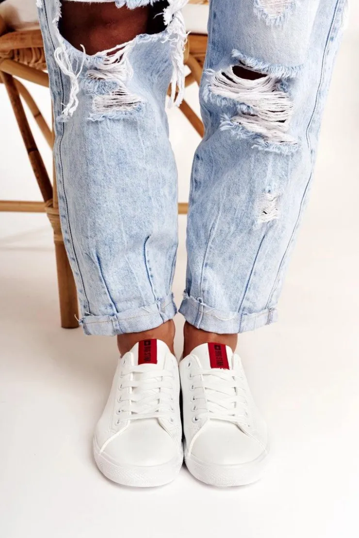 Best Big Star Shoes Damskie Skórzane Tenisówki Z Tasiemką BIG STAR DD274685 Białe Biały