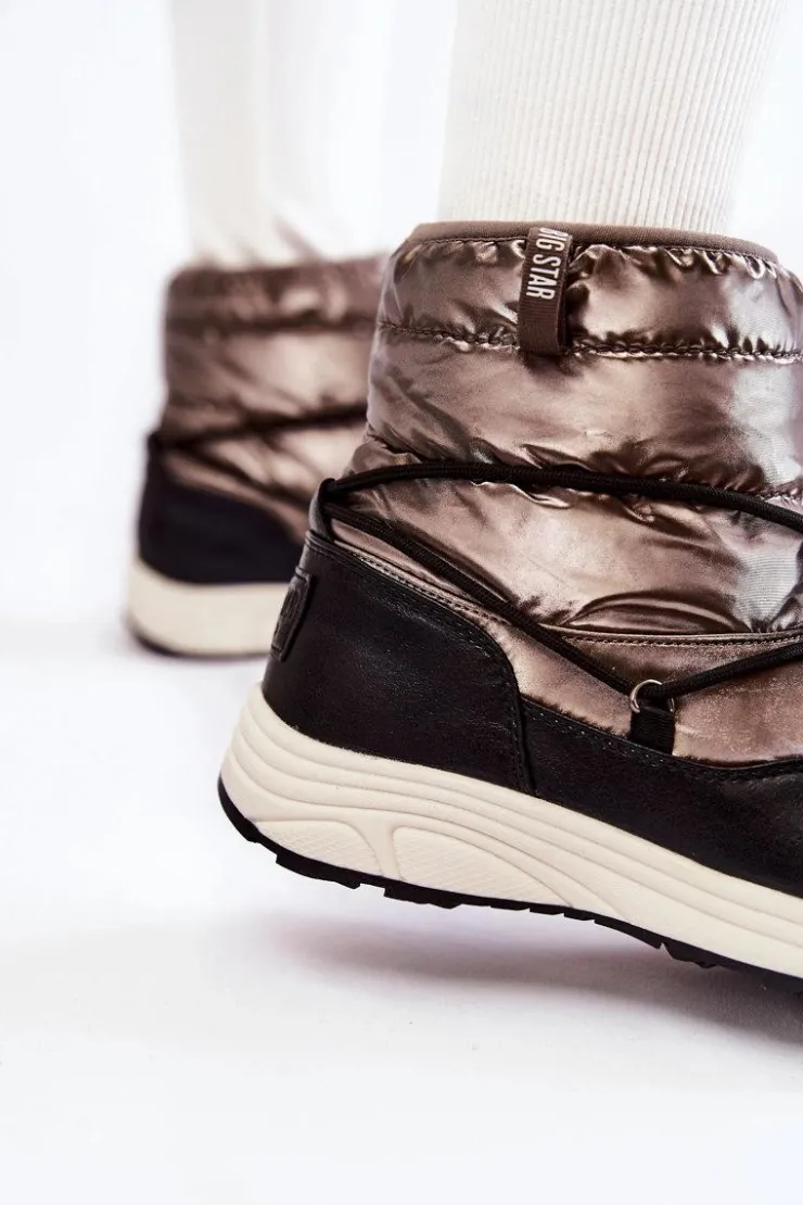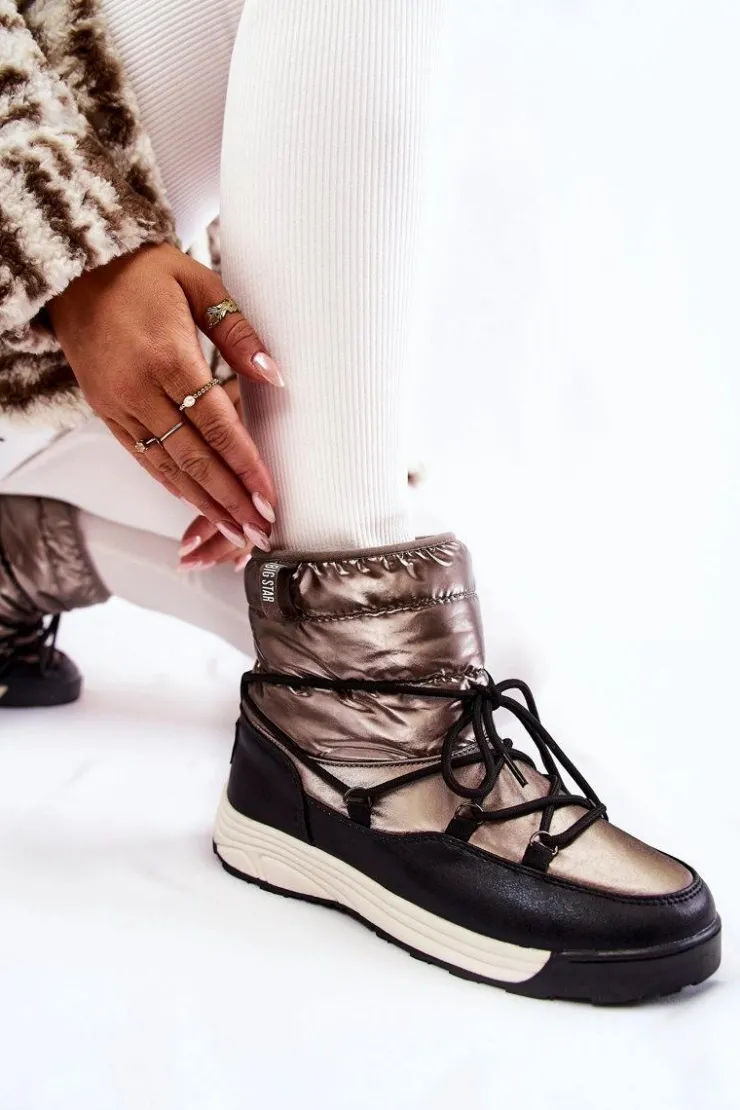Modne botki damskie zostały wykonane z wysokiej jakości materiałów odpornych na mróz i wiatr. Posiadają w środku ocieplenie w postaci miłego w dotyku koca obuwniczego. Wkładka Memory Foam zapamiętuje kształt stopy, zapewnia doskonałe dopasowanie oraz absorbuje wstrząsy. Dodatkowo jest odporna na odkształcenia oraz pozwala na odparowywanie wilgoci i regulacje temperatury. Model wsuwany ze sznurowaniem. Przy wyborze rozmiaru prosimy sugerować się tabelą rozmiarów.