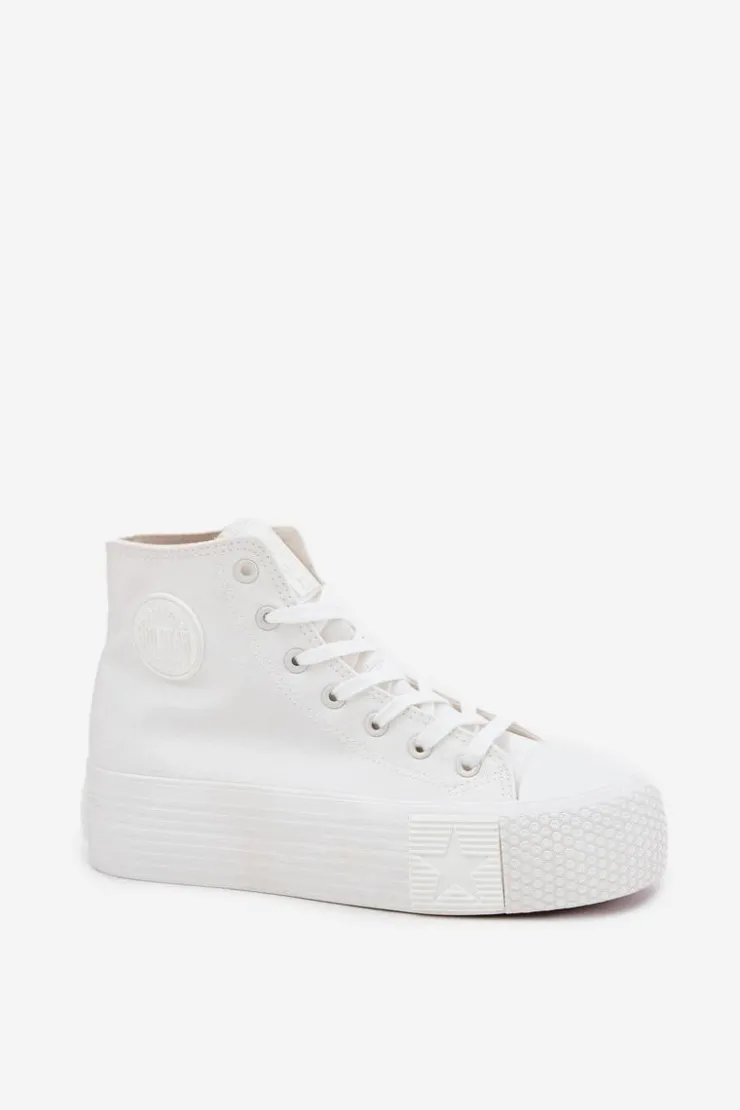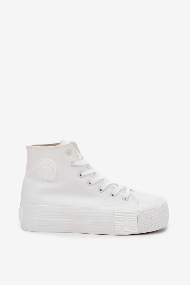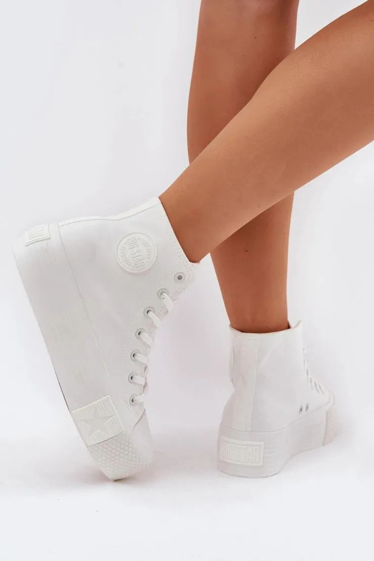 Trampki damskie marki Big Star to połączenie wygody i modnego wyglądu. Wykonane z materiału tekstylnego, osadzone na masywnej platformie, zapewniają stabilność oraz komfort przez cały dzień. Zaokrąglone noski. Cholewka sięgająca za kostkę z logo marki przyciąga wzrok, nadając nowoczesnego charakteru. Stylowy fason sprawia, że te trampki będą doskonałym wyborem do codziennych, casualowych stylizacji. Przy wyborze rozmiaru prosimy sugerować się tabelą rozmiarów.