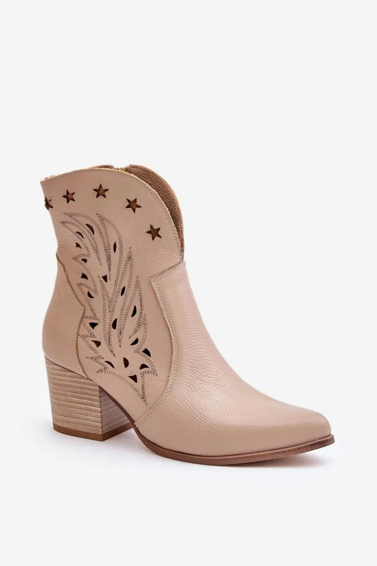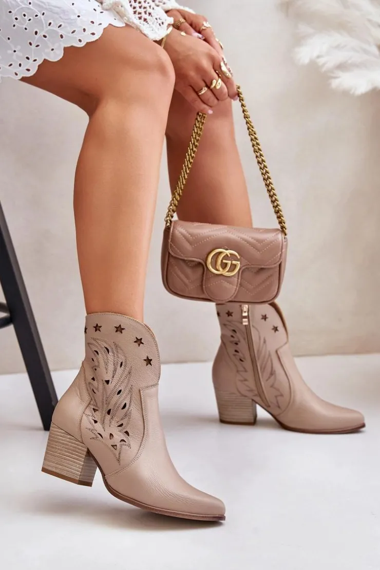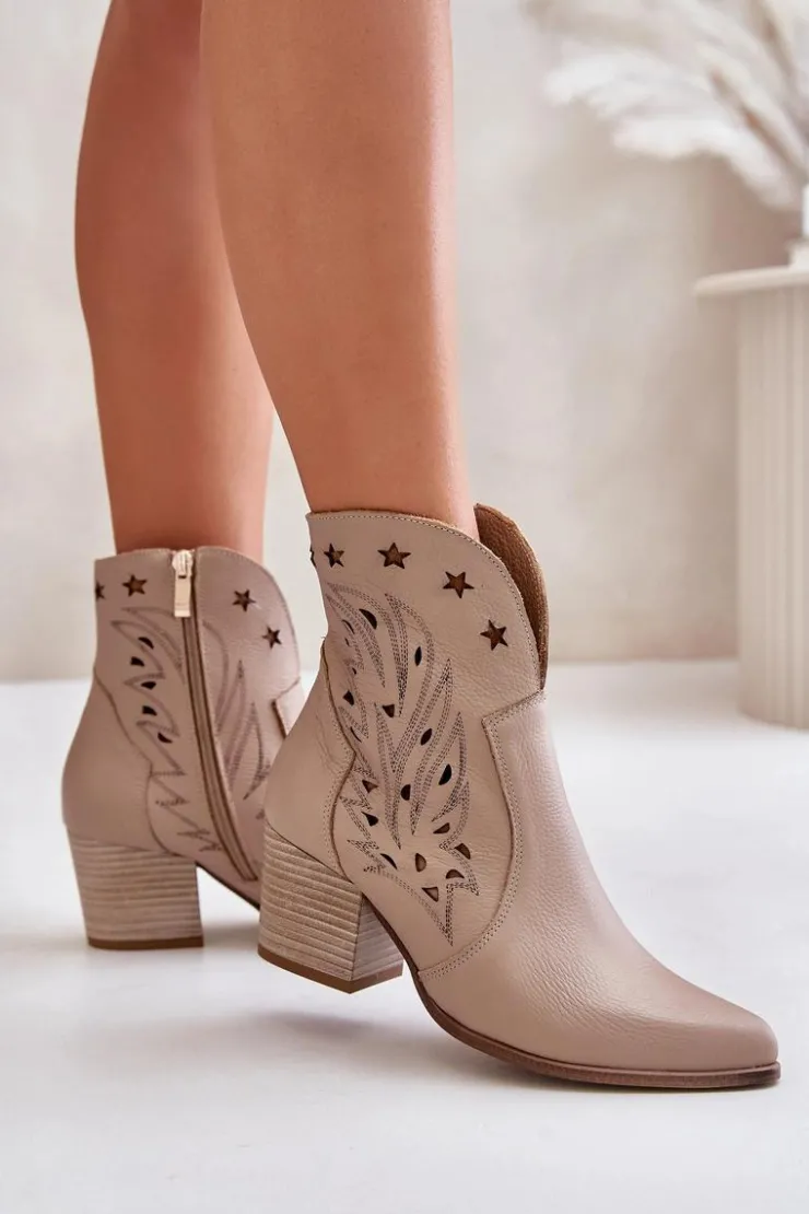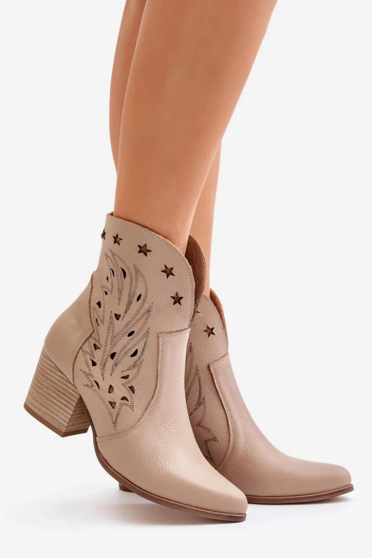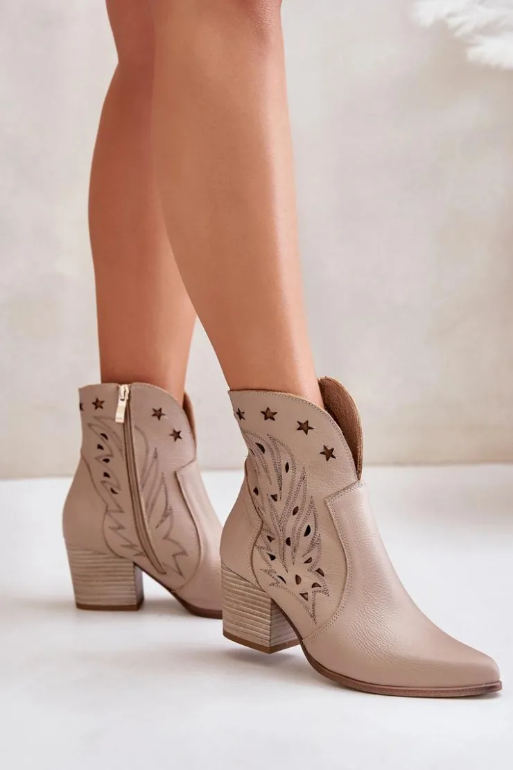 Best Boto Ażurowe Botki Kowbojki Skórzane Na Słupku Lewski 3613 Beżowe