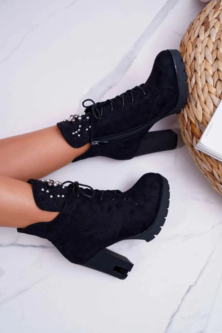 Best Boto Botki Damskie na Słupku Platformie Zamszowe Czarne Fieste