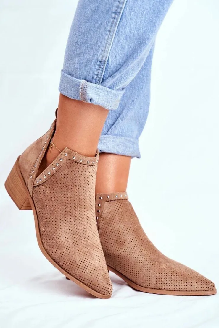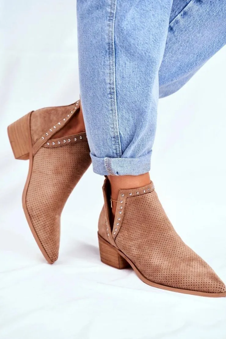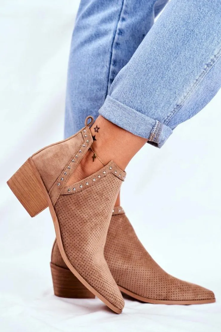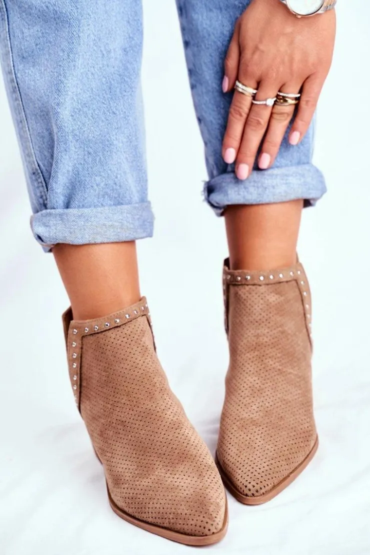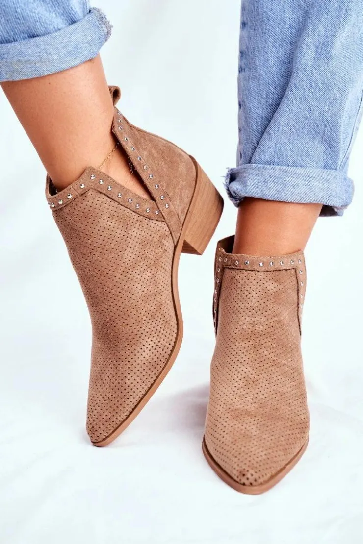 Best Boto Botki Damskie Na Słupku Zamszowe Ażurowe Beżowe Margate