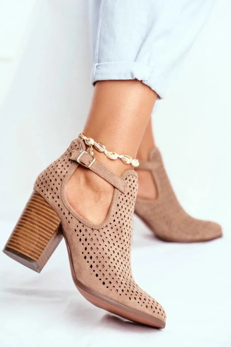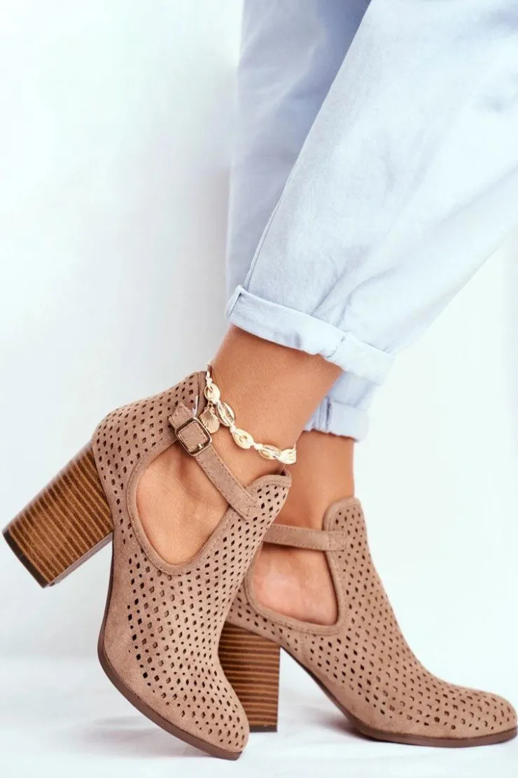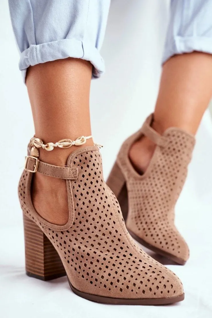 Best Boto Botki Damskie Na Słupku Zamszowe Ażurowe Beżowe Morrena