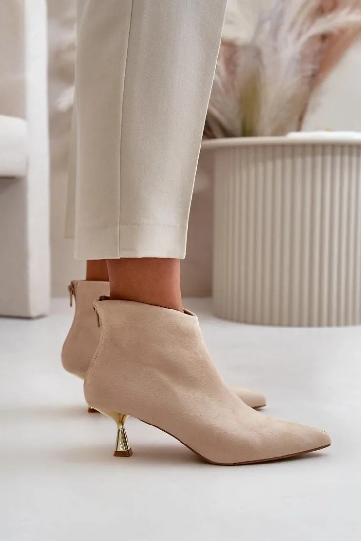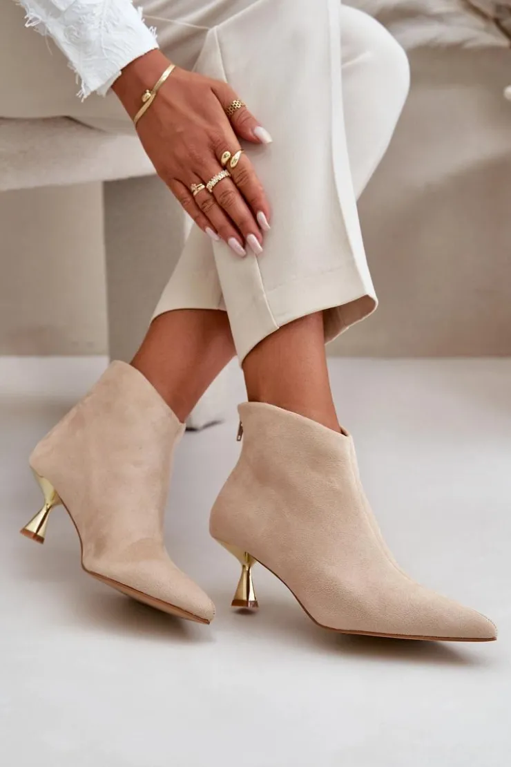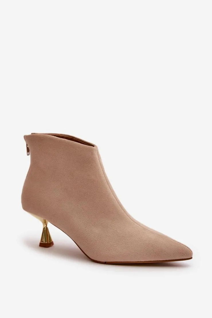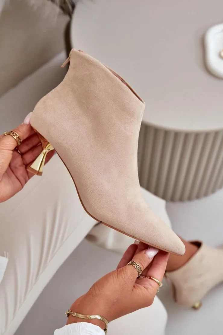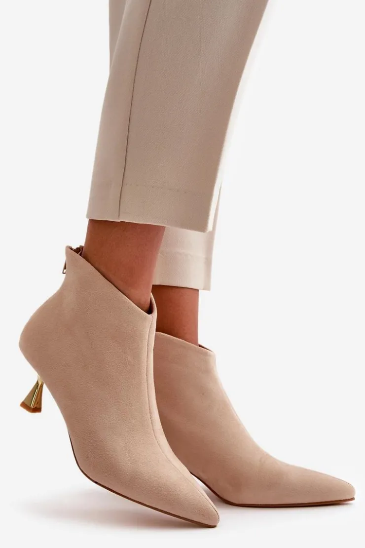 Stylowe botki damskie na ozdobnej szpilce to elegancki dodatek, który przyciąga uwagę swoim wyjątkowym designem. Zapinane na zamek z tyłu, zapewniają wygodę i łatwość zakładania. Noski w szpic dodają wyrafinowanego charakteru, podkreślając kobiecość i smukłość sylwetki. Idealne na specjalne okazje, jak i do codziennych stylizacji, kiedy chcesz dodać sobie odrobinę elegancji. Przy wyborze rozmiaru prosimy sugerować się tabelą rozmiarów.