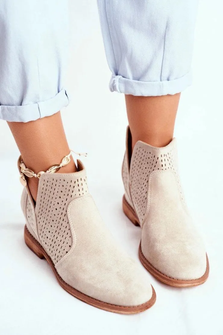 Best Boto Botki Damskie Płaski Obcas Zamszowe Ażurowe Cappuccino Shades