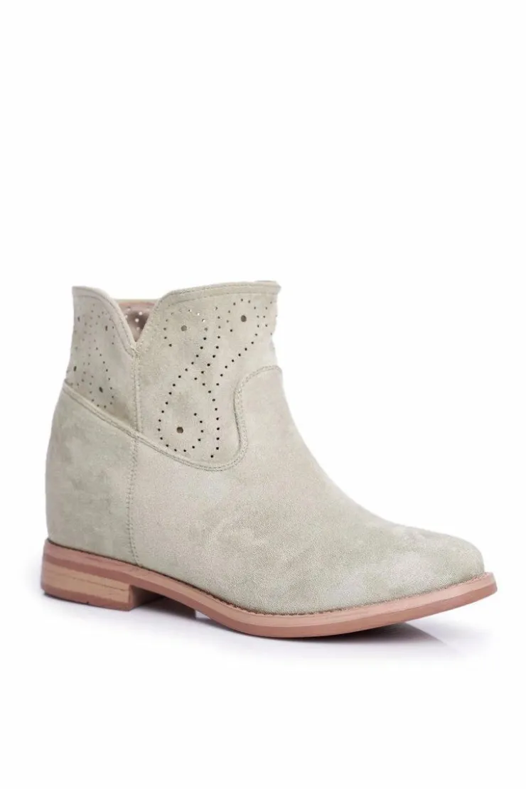 Best Boto Botki Damskie Płaski Obcas Zamszowe Ażurowe Zielone Raffe