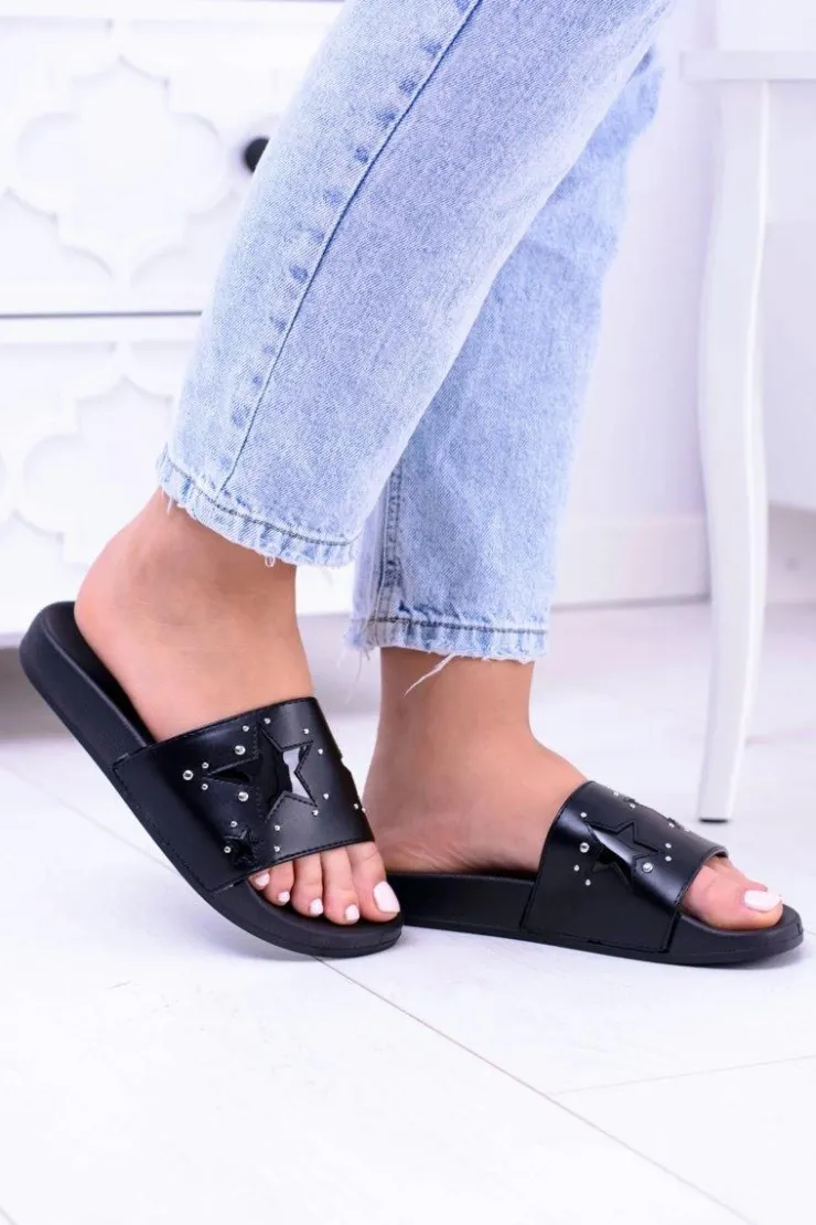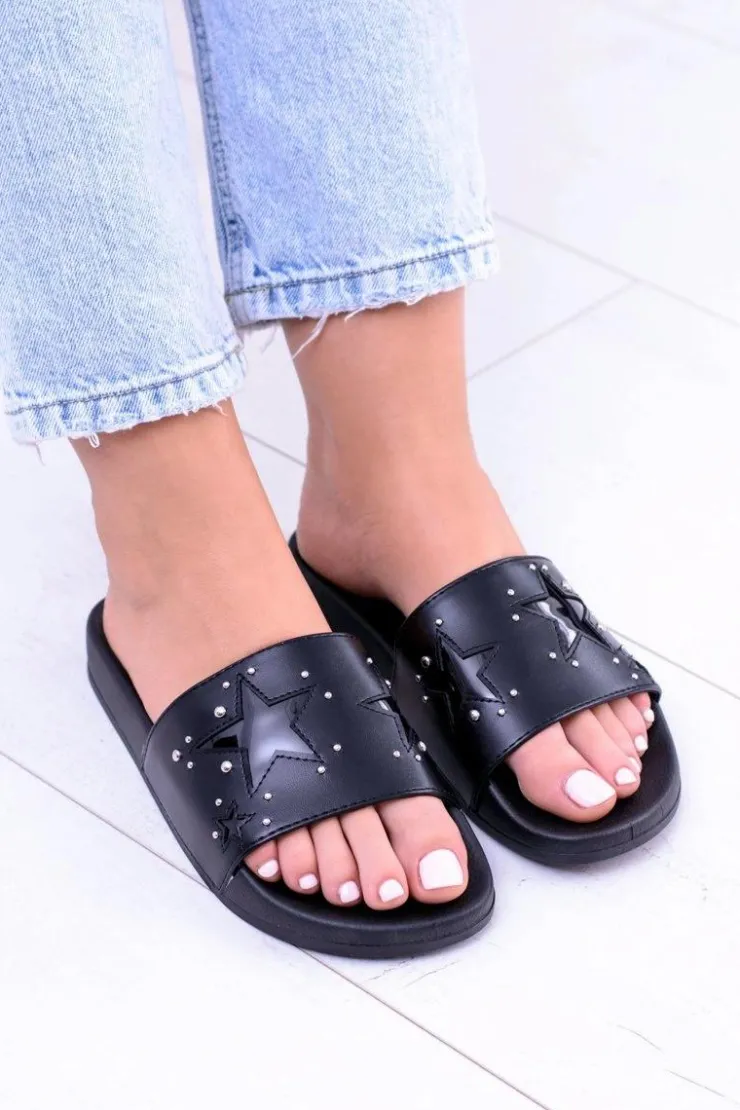Best Boto Czarne Damskie Klapki Dżety Gwiazdy Bajela