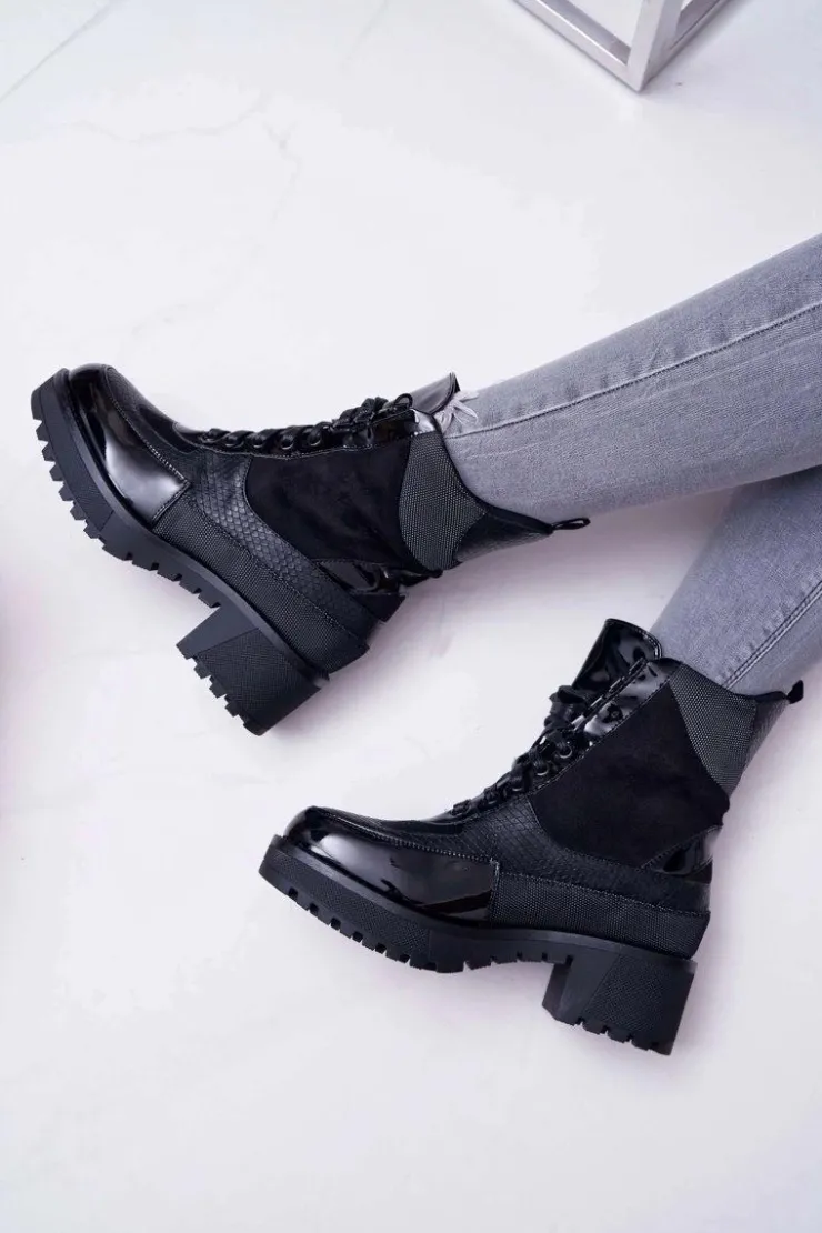 Best Boto Damskie Botki Wysokie Czarne Trapery Nemtere