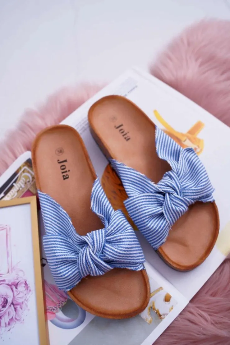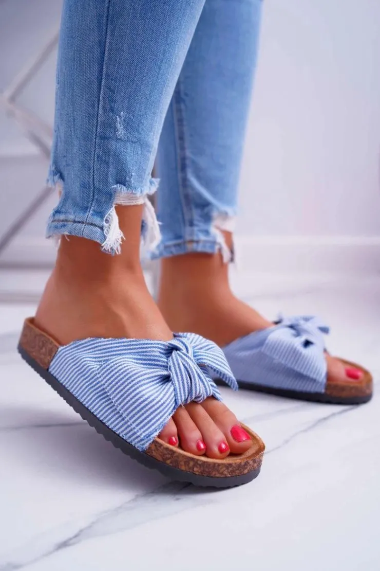 Best Boto Damskie Klapki Na Korku Kokarda Niebieskie Randy