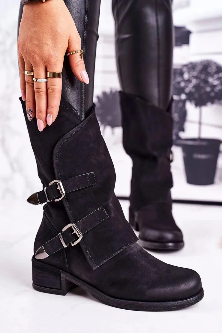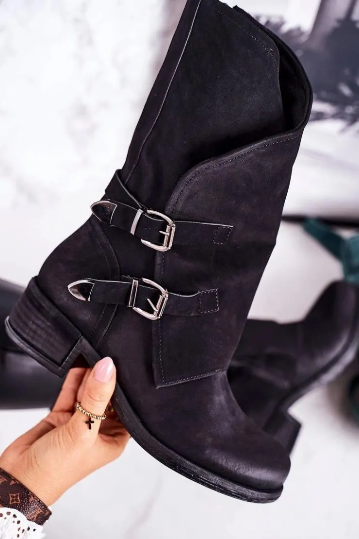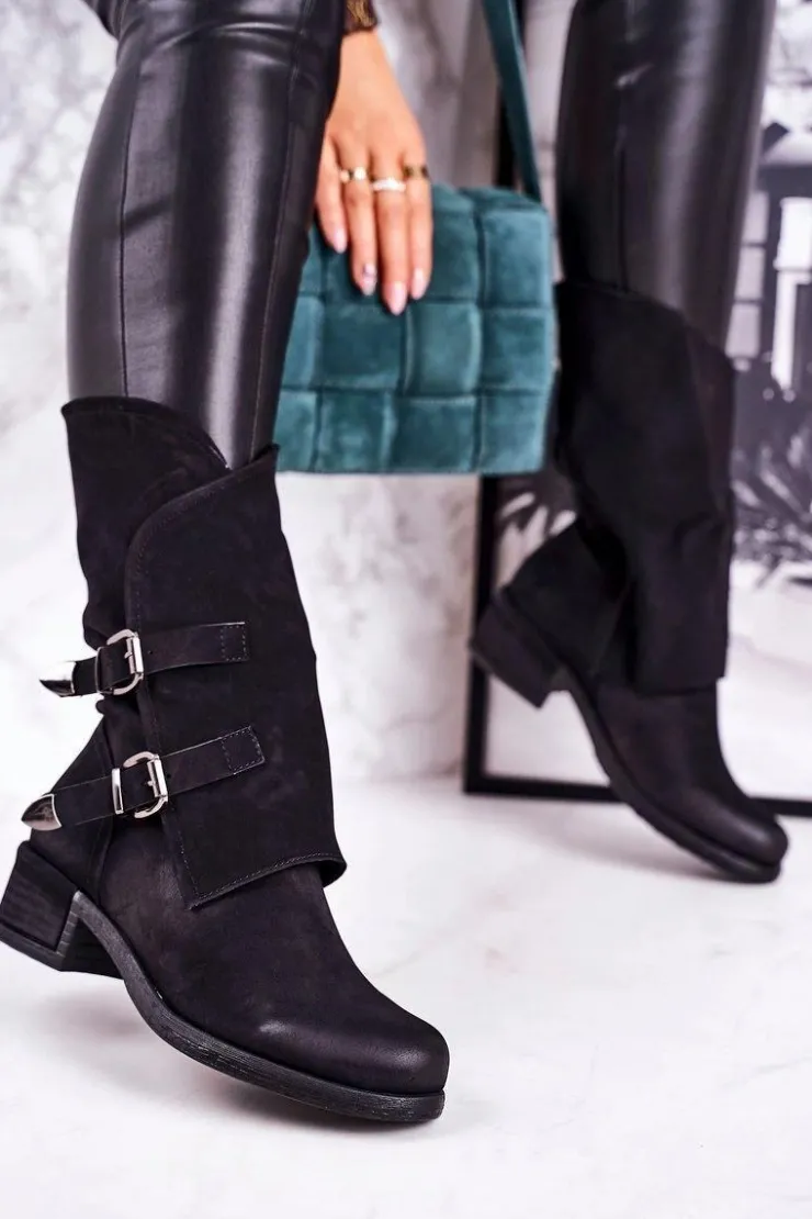 Best Boto Damskie Ocieplane Botki Z Klamrami Czarne Cassidy