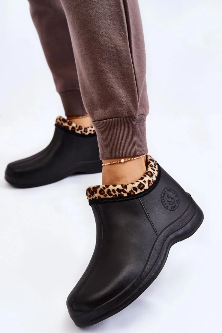Klasyczne, damskie kalosze zostały wykonane z piankowego tworzywa typu EVA. Model ten został ocieplony eko futerkiem. Buty osadzone na płaskim obcasie oraz delikatnej platformie. Z boku znajduje się ozdobne, tłoczone logo. Idealne na spacery po mokrym podłożu czy do prac w ogrodzie. Przy wyborze rozmiaru prosimy sugerować się tabelą rozmiarów.