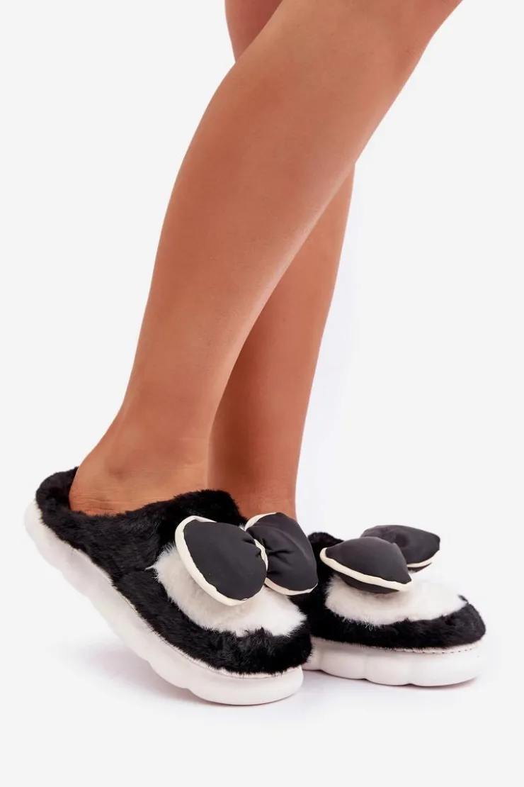 Kapcie damskie wykonane z miękkiego, przytulnego futerka, idealnie otulają stopy, zapewniając ciepło i komfort. Model osadzony na grubszej podeszwie, co dodaje stabilności i izoluje od chłodnego podłoża. Zakryte noski zapewniają dodatkową ochronę przed zimnem, czyniąc kapcie idealnym wyborem na chłodne dni. Przód ozdobiony kokardką, która nadaje wyjątkowego uroku. Stylowe i praktyczne! Przy wyborze rozmiaru prosimy sugerować się tabelą rozmiarów.