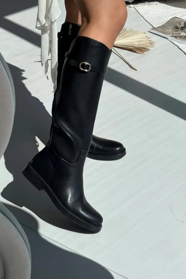 Kozaki damskie z eko skóry to połączenie prostoty i subtelnego stylu. Osadzone na płaskim obcasie, zapewniają wygodę przy codziennym noszeniu, a zamek ułatwia szybkie zakładanie. Wnętrze ocieplone na wysokości stopy gwarantuje komfort w chłodniejsze dni. Dodatkowo cienki paseczek ze złotą klamrą, który można odpiąć, wprowadza elegancki akcent i pozwala na drobną zmianę stylu w zależności od okazji. Przy wyborze rozmiaru prosimy kierować tabelą rozmiarów.
