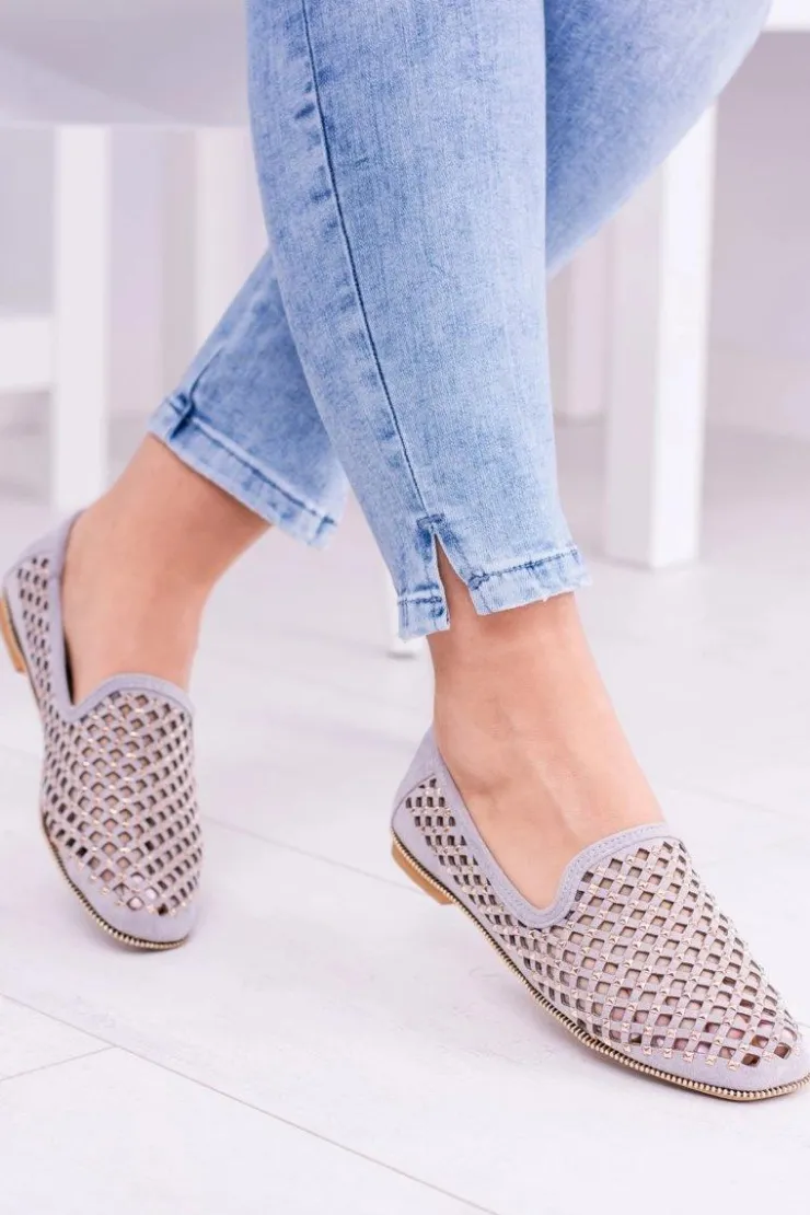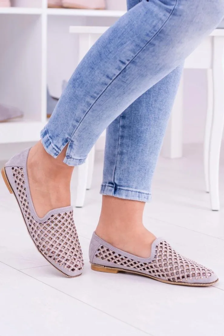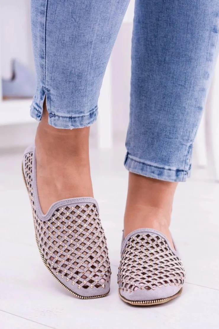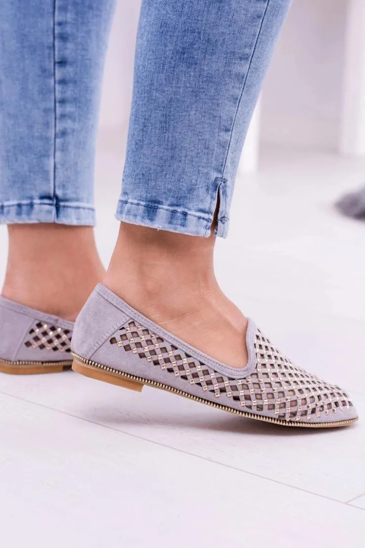 Best Boto Lu Boo Szare Ażurowe Baleriny Lordsy Ćwieki Carmar