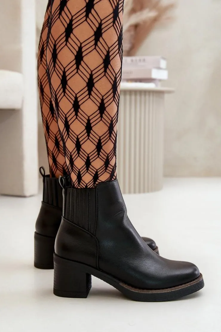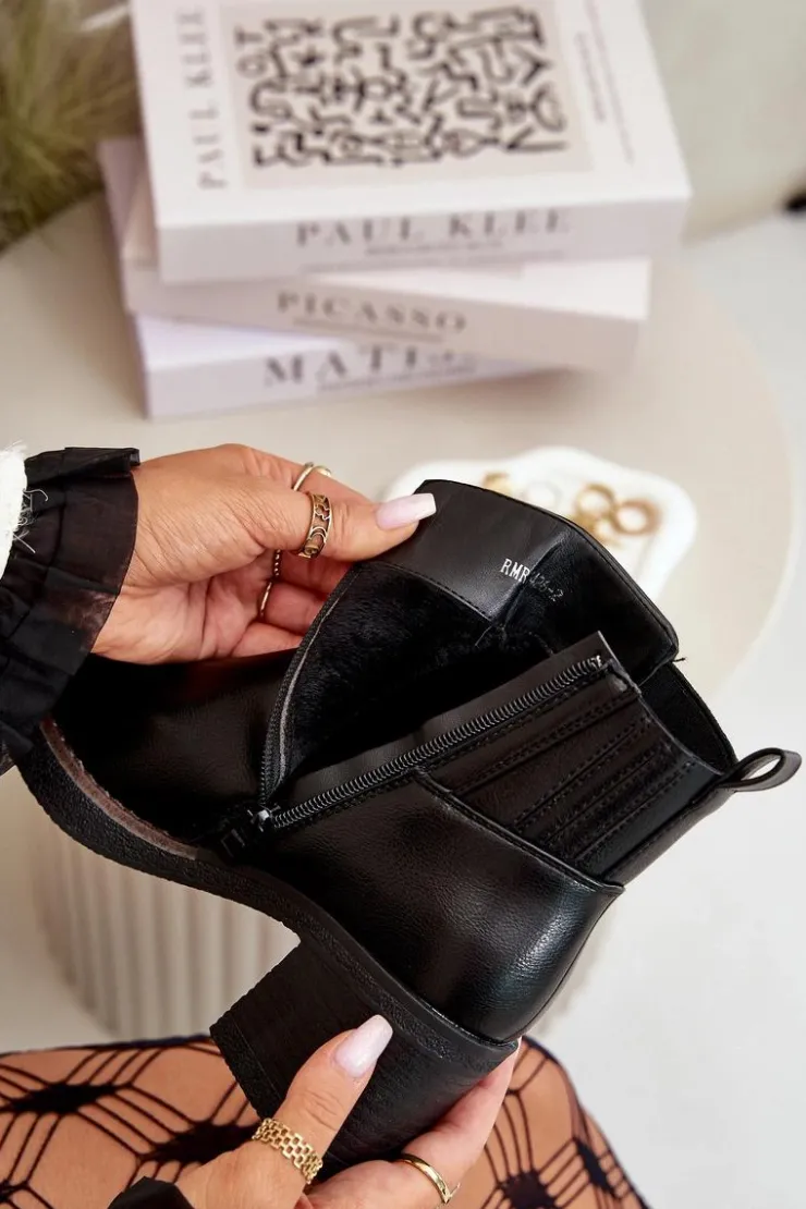 Klasyczne botki damskie wykonane z eko skóry to doskonały wybór na chłodniejsze dni. Wewnątrz ocieplone kocem obuwniczym, zapewniają ciepło i komfort nawet w niskich temperaturach. Osadzone na stabilnym obcasie słupku, łączą elegancję z wygodą noszenia. Praktyczne zapięcie na zamek ułatwia szybkie i wygodne zakładanie. Te botki to idealne uzupełnienie zarówno codziennych, jak i bardziej formalnych stylizacji. Przy wyborze rozmiaru prosimy sugerować się tabelą rozmiarów.