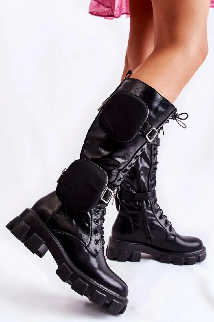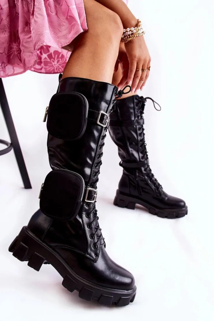 Kozaki z ozdobnymi nerkami Idealnie podkreślą każdą stylizację. Wierzch kozaków wykonany jest ze skóry ekologicznej. Wnętrze butów pokryte jest miękkim w dotyku ociepleniem.