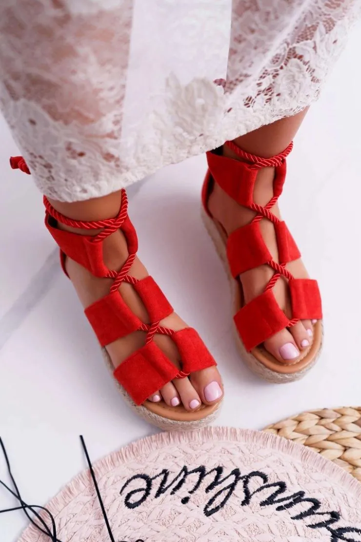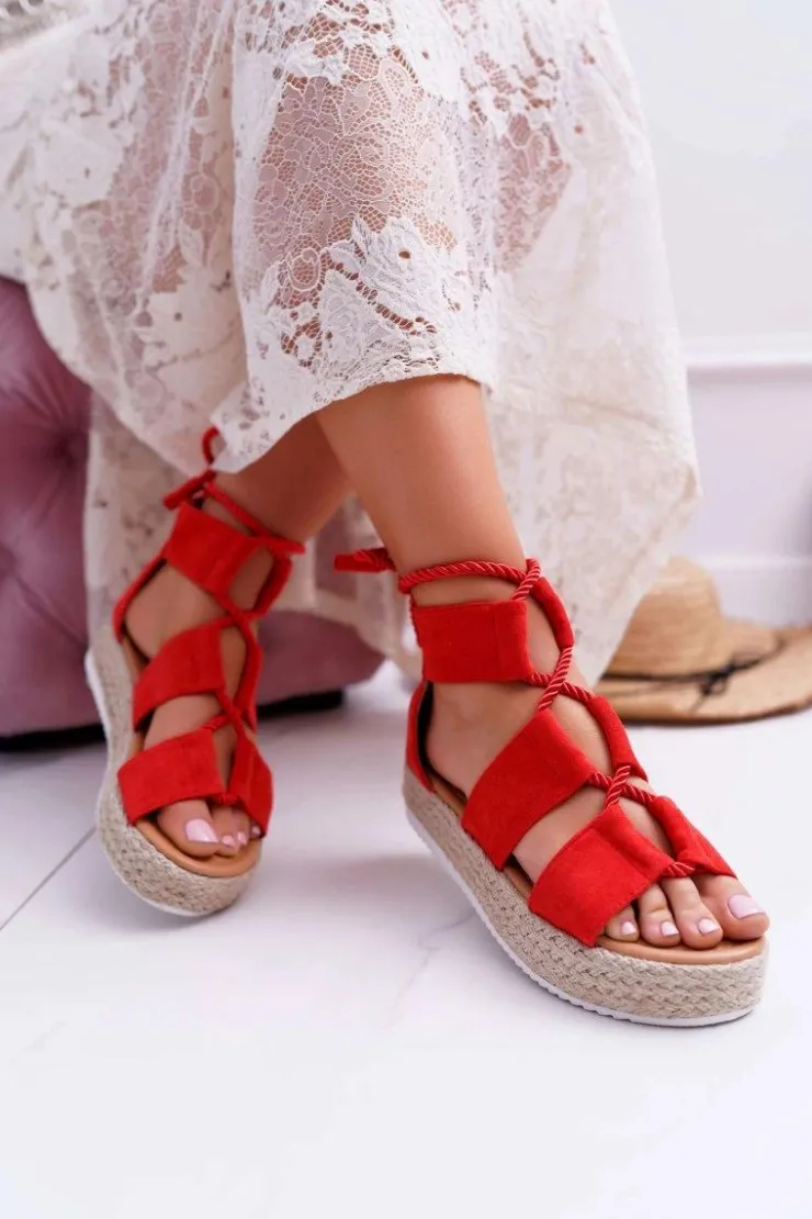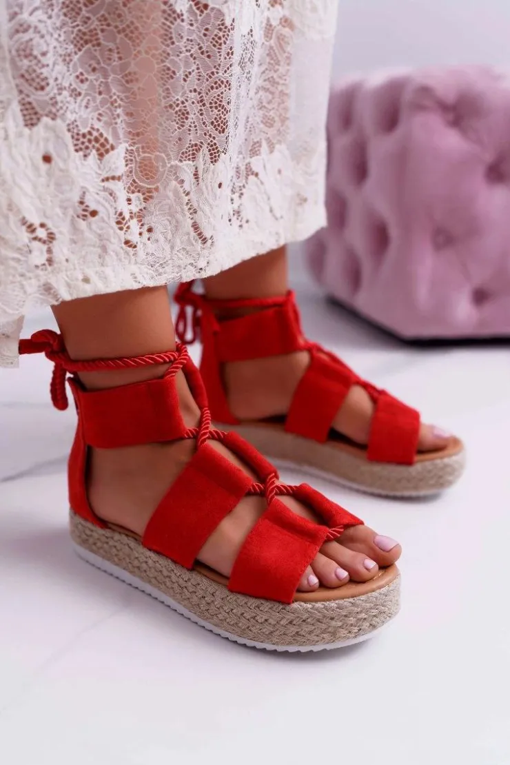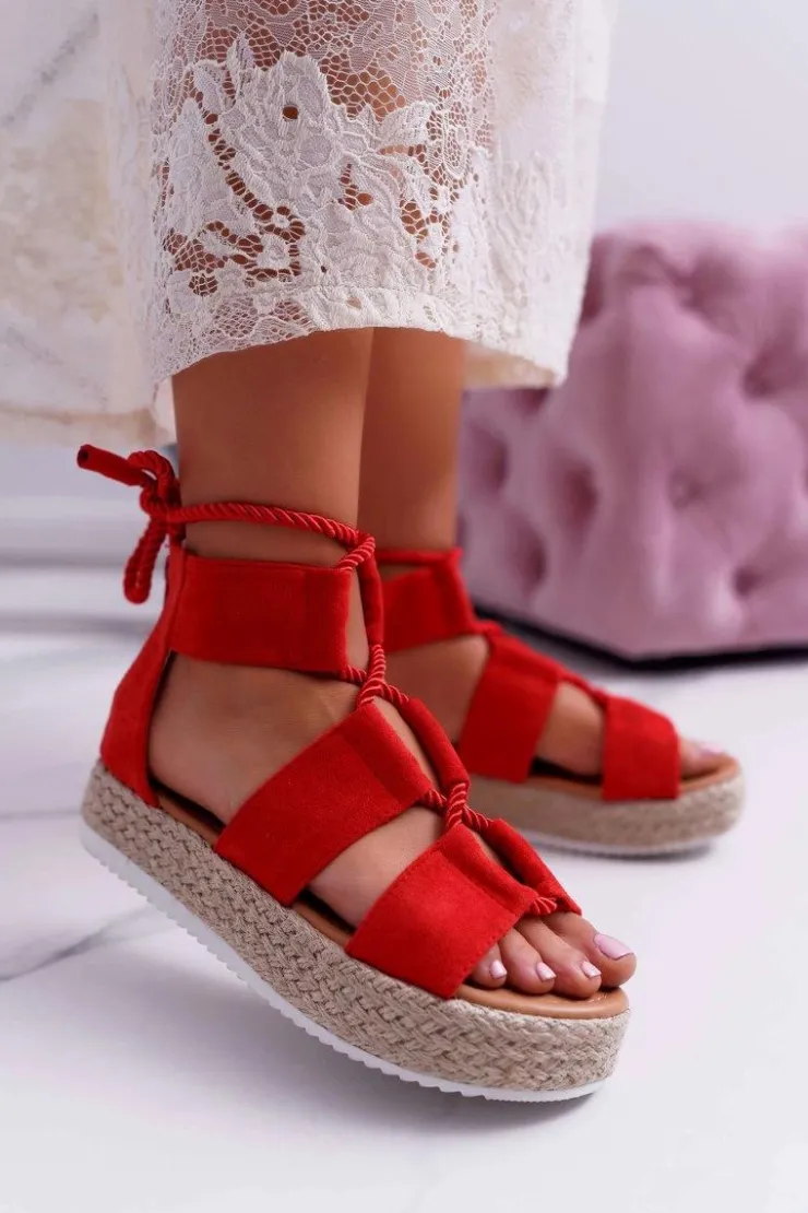Best Boto Sandały Damskie na Platformie Zamszowe Czerwone Ergola