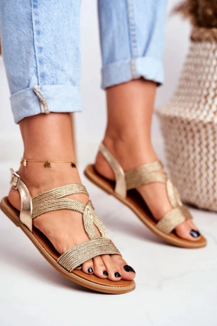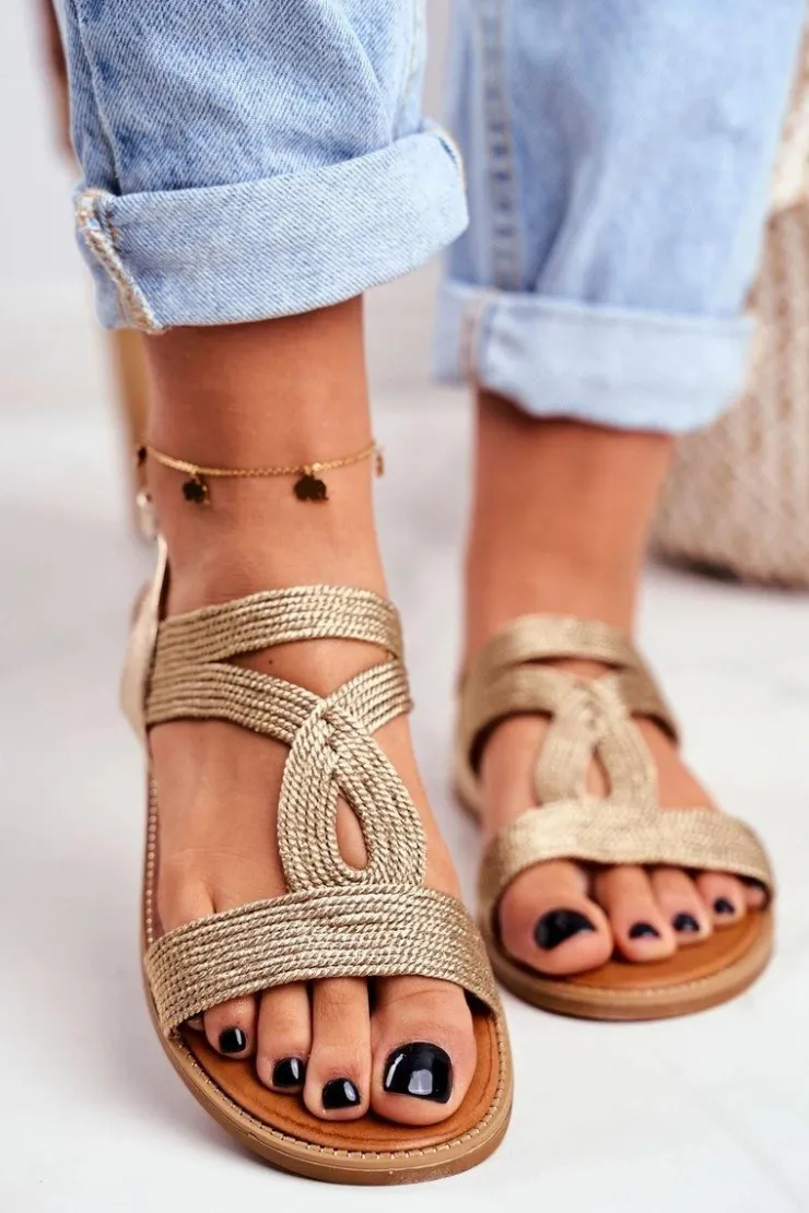 Best Boto Sandały Damskie Płaskie Złote Rachel