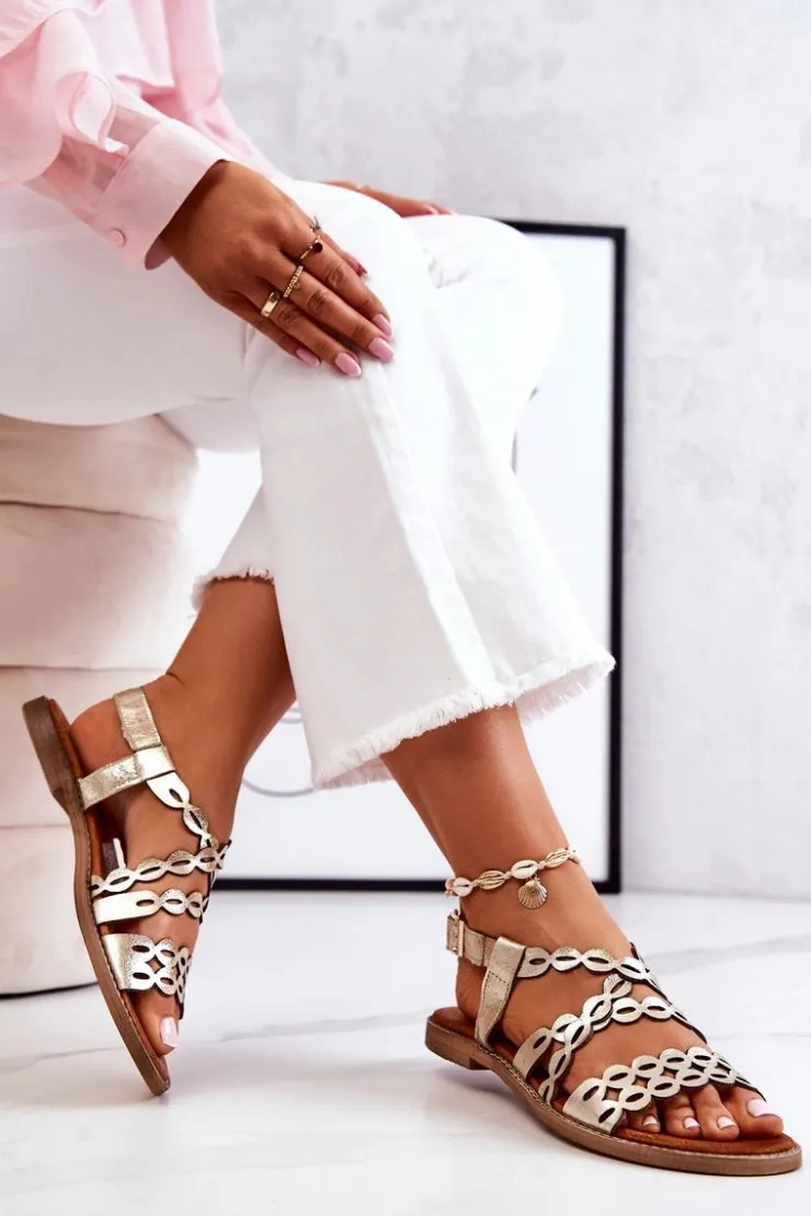 Sandały z ażurowym wzorem wyglądają naprawdę efektownie. Buty wykonane zostały ze skóry naturalnej. Zapinane na regulowany pasek ze sprzączką. Świetny model, który zachwyci niejedną z Was! Koniecznie sprawdź także pozostałe sandałki! Musisz je mieć, nie czekaj aż znikną! Przy wyborze rozmiaru prosimy sugerować się tabelą rozmiarów.