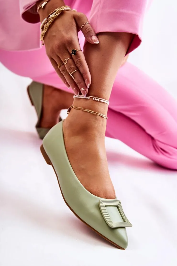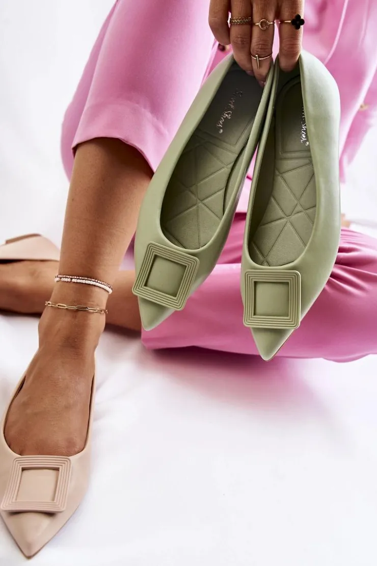 Modne baleriny z ozdobnym elementem z tworzywa sztucznego na przodzie. Buty wykonane są w całości z eko skóry. Miękka wkładka zadba o Twój komfort nawet podczas całodziennego użytkowania. Nosek w szpic. Baleriny dopełnią wiele letnich stylizacji. Osadzone na płaskim obcasie z antypoślizgową podeszwą. Koniecznie powinnaś sprawdzić także pozostałą kolekcję balerinek! Przy wyborze rozmiaru prosimy sugerować się tabelą rozmiarów.