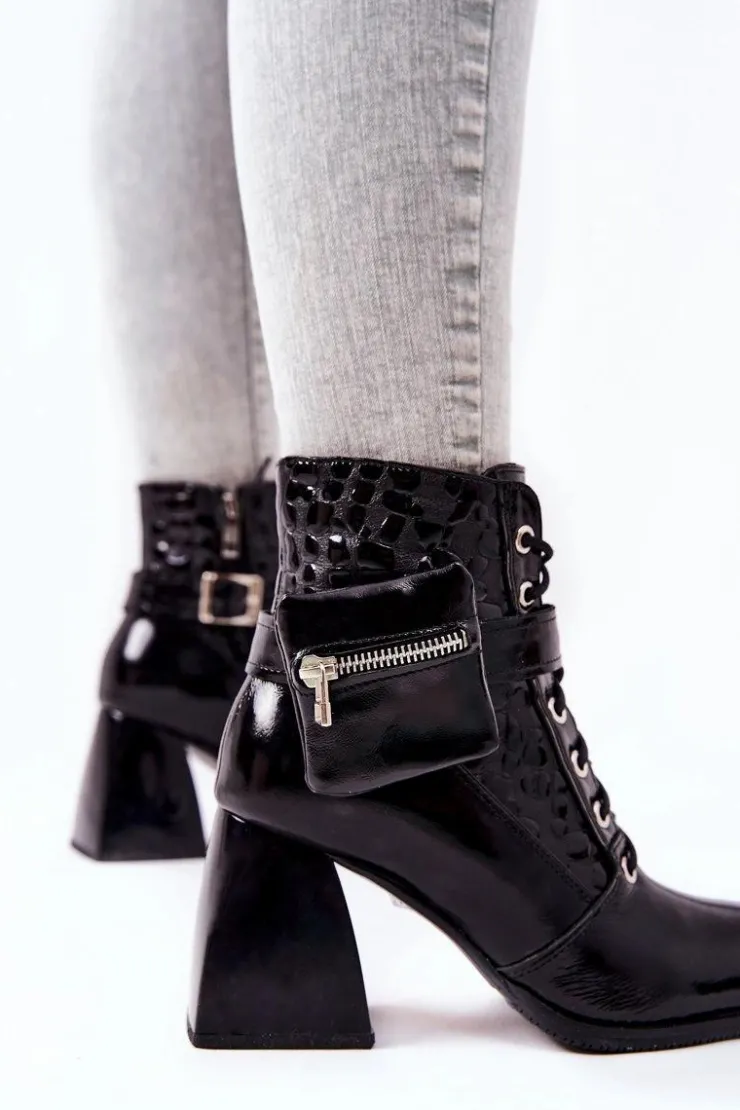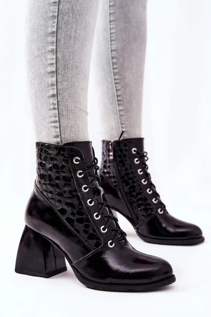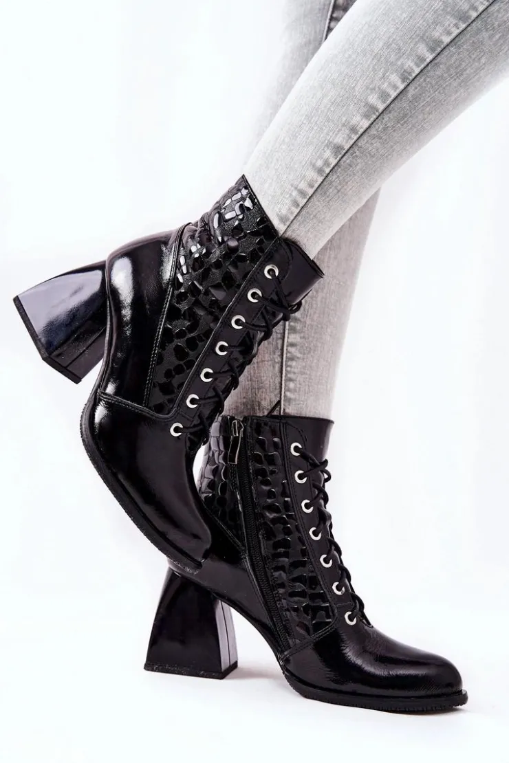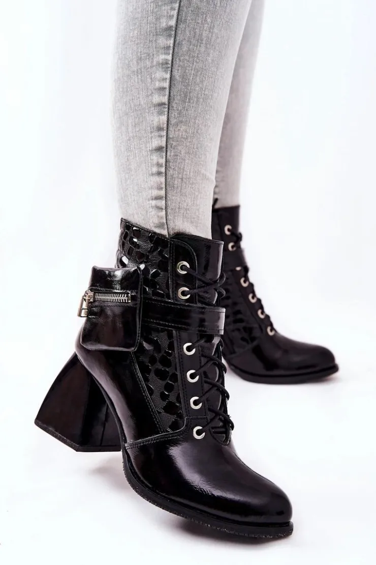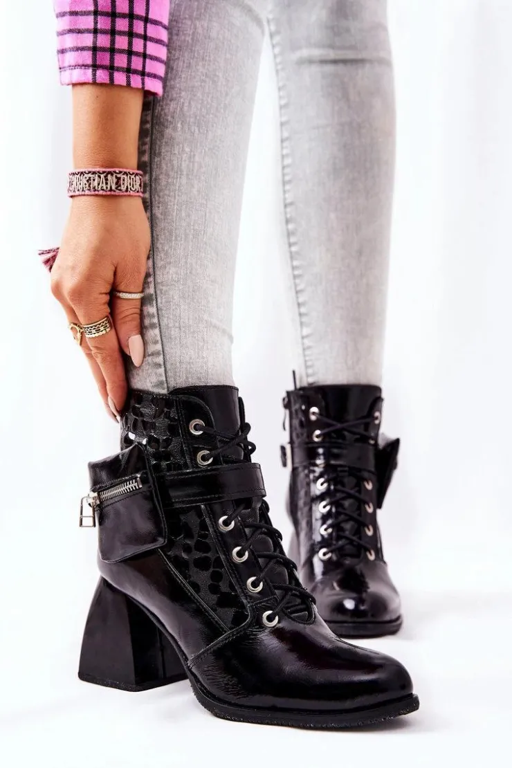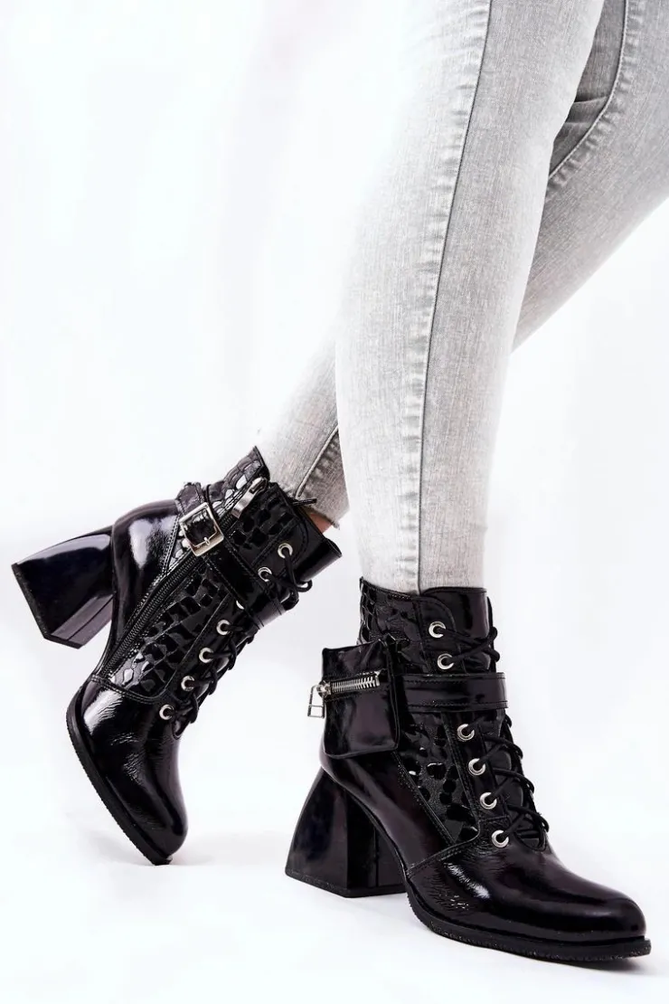 Świetne botki wykonane z naturalnej skóry powinny być Twoje! Posiadają szeroki obcas. Wyjątkowy model z nerką zapinaną na suwak, którą można ściągnąć, dzięki regulowanemu paskowi zapinanemu na sprzączkę. Fason wiązany oraz zapinany na suwak. W środku posiada ocieplenie w postaci koca obuwniczego oraz usztywniany zapiętek.
