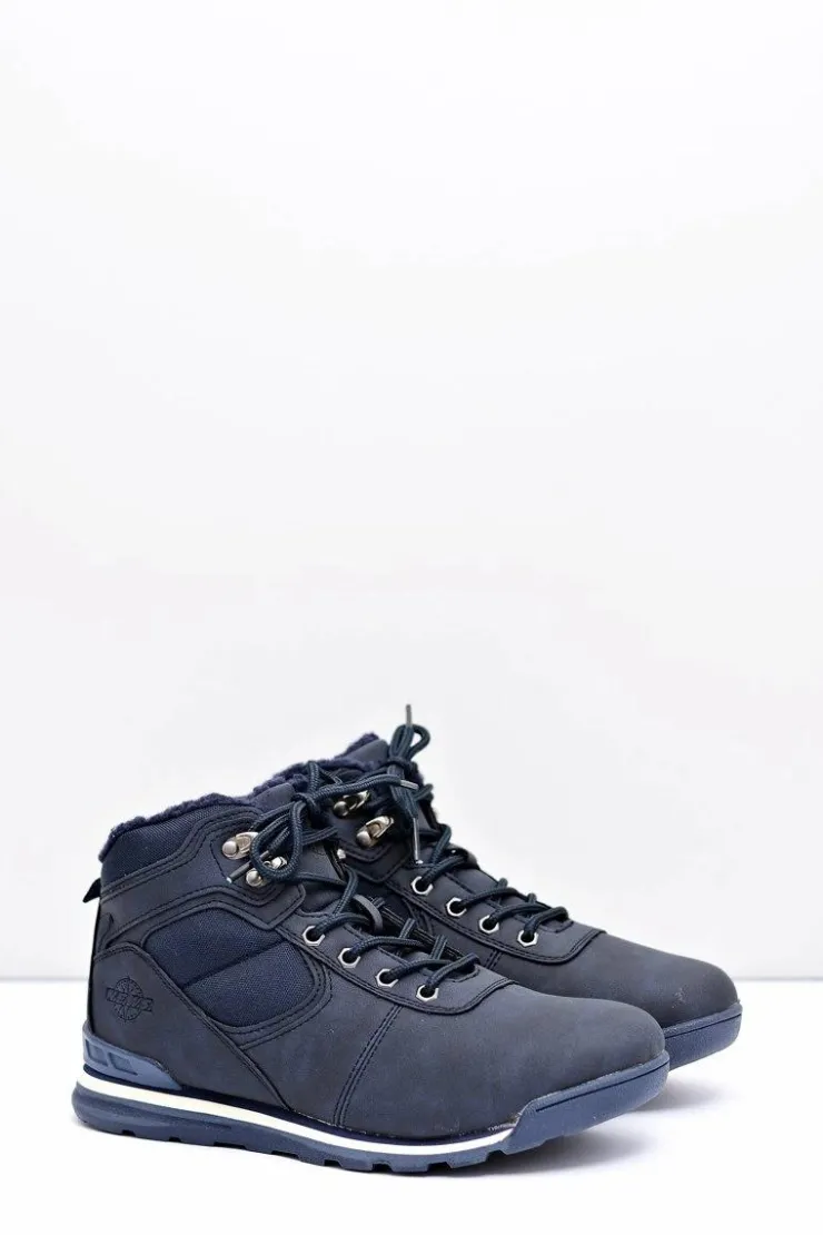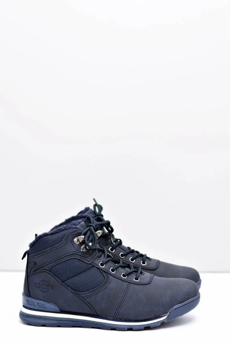 Best Boto Trekkingowe Damskie Granatowe Ocieplane Buty z Kożuszkiem Sheep