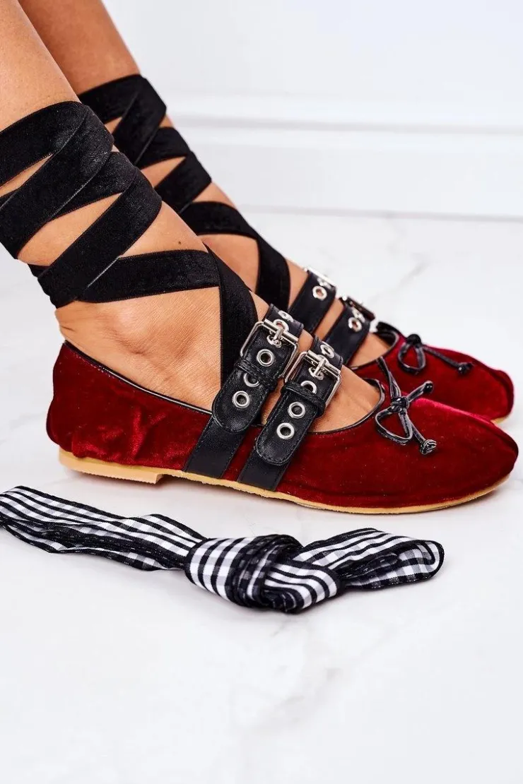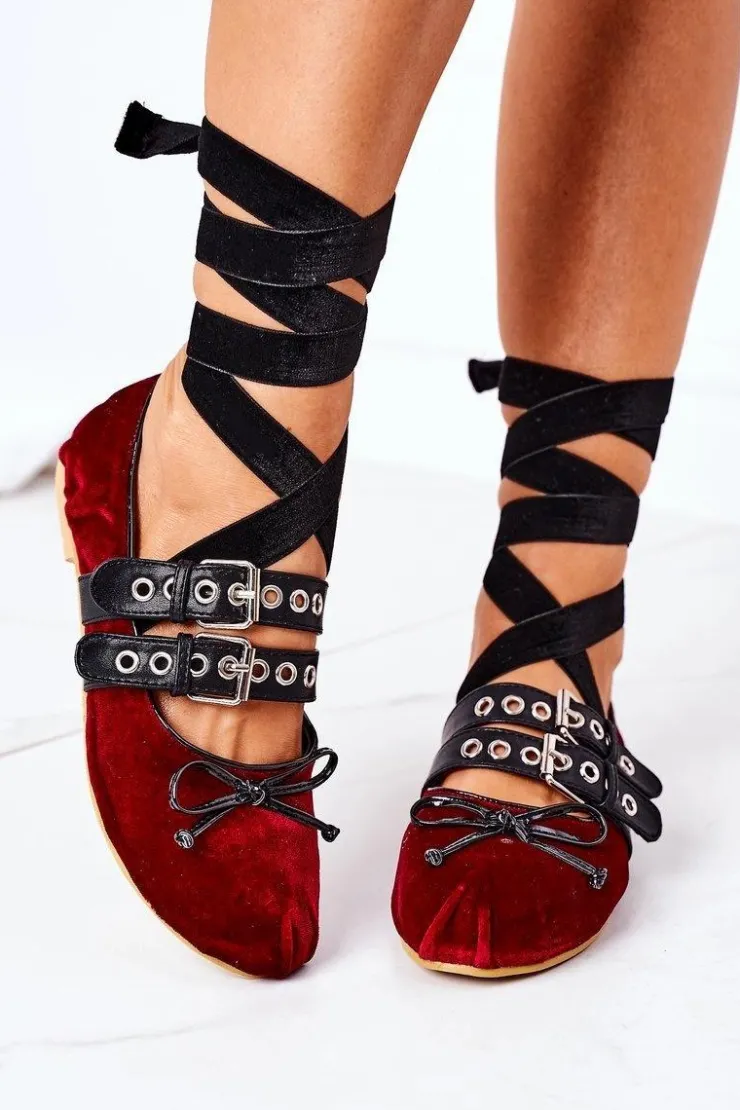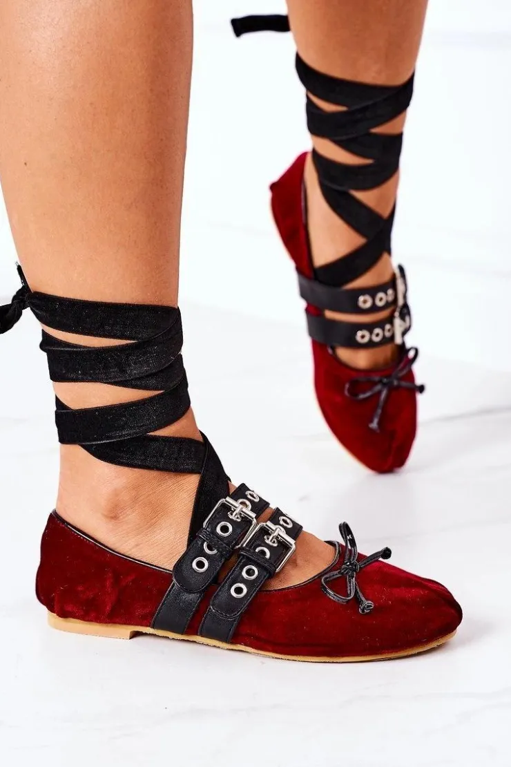 Best Boto Wiązane Welurowe Baleriny Lu Boo Bordowe