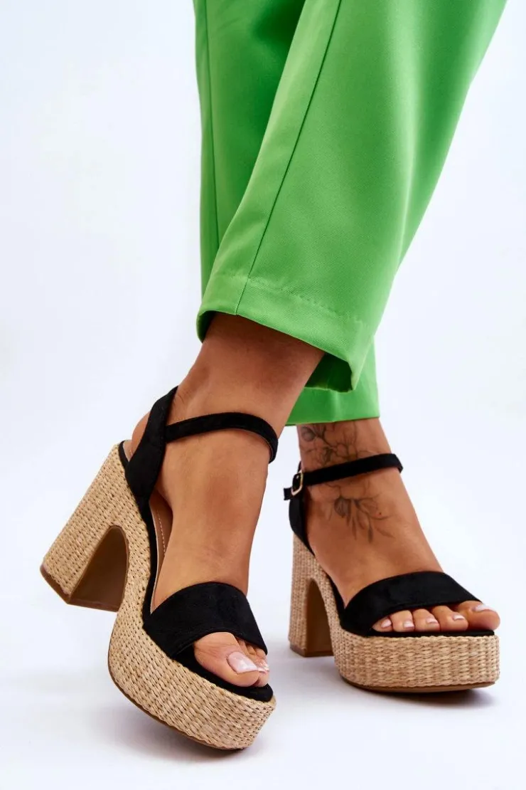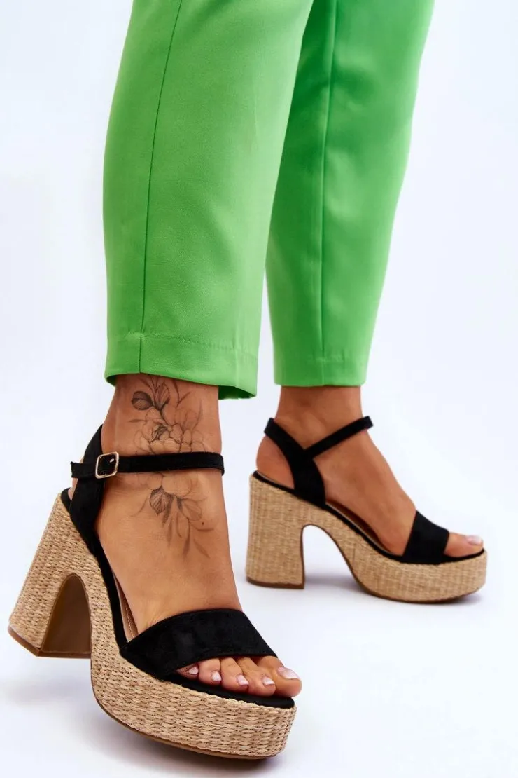 Świetne sandałki na masywnym obcasie w postaci słupka oraz platformie. Wykonane z przyjemnej w dotyku ekologicznej skóry. Sandałki posiadają odkryty, zaokrąglony nosek. Zapinane wokół kostki na regulowany pasek ze sprzączką. Ten model z pewnością sprawdzi się w wielu stylizacjach! Przy wyborze rozmiaru prosimy sugerować się tabelą rozmiarów.