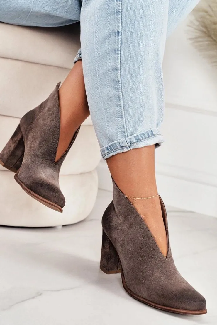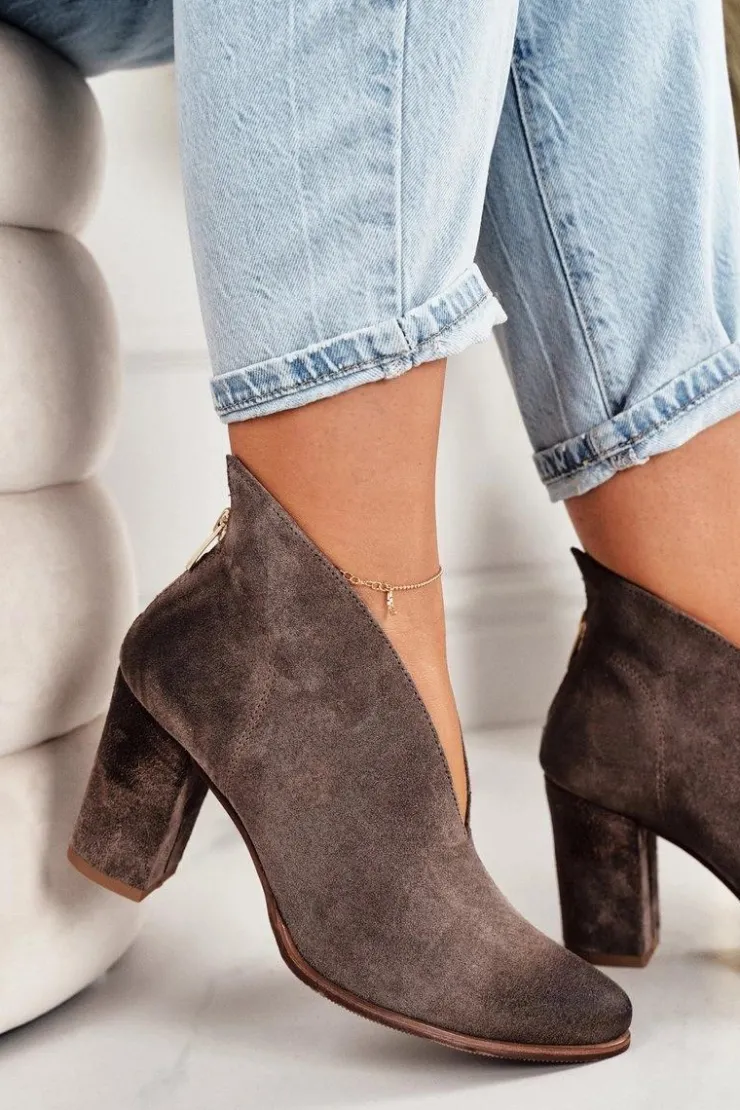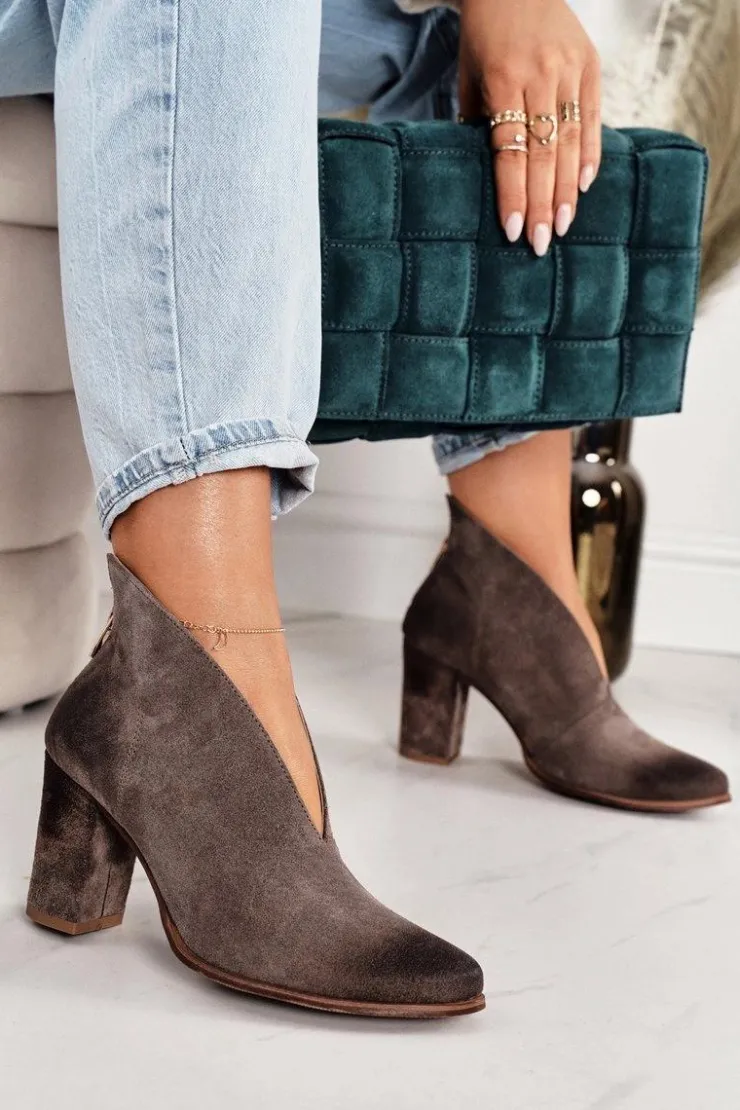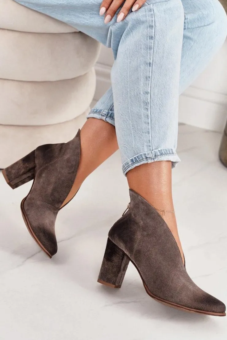 Best Boto Zamszowe Botki Na Słupku Z Wycięciem Exquisite 1231 Cappuccino