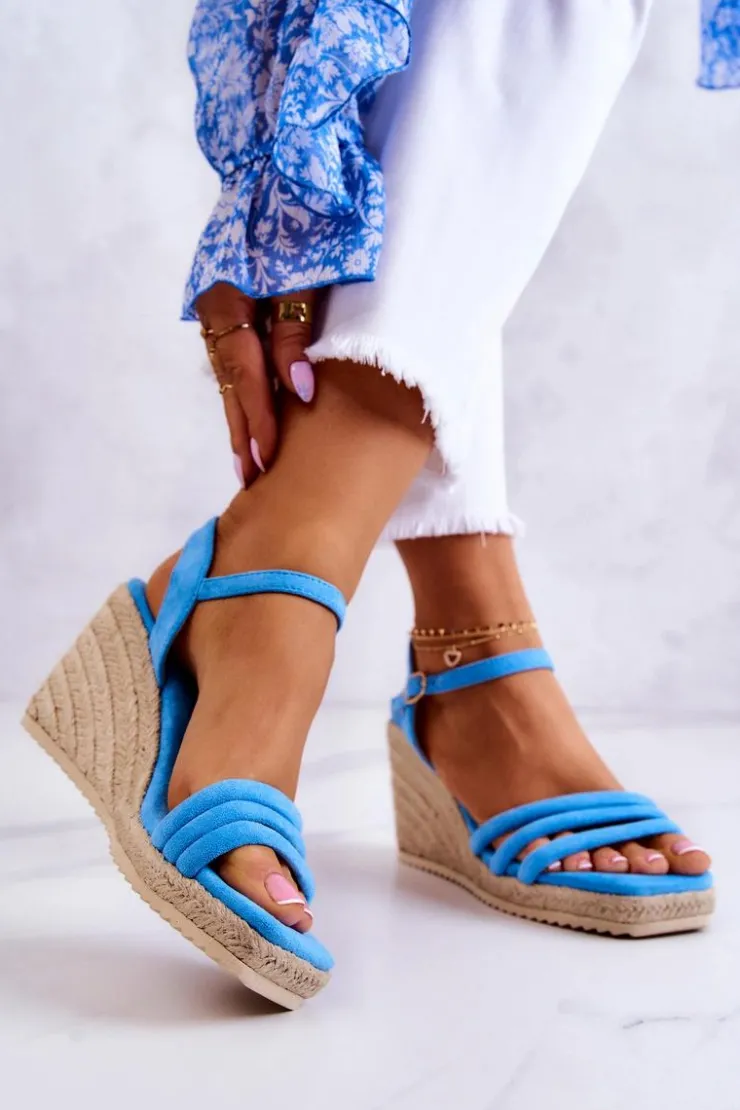 Best Boto Zamszowe Sandałki Na Koturnie Niebieskie Louisiana