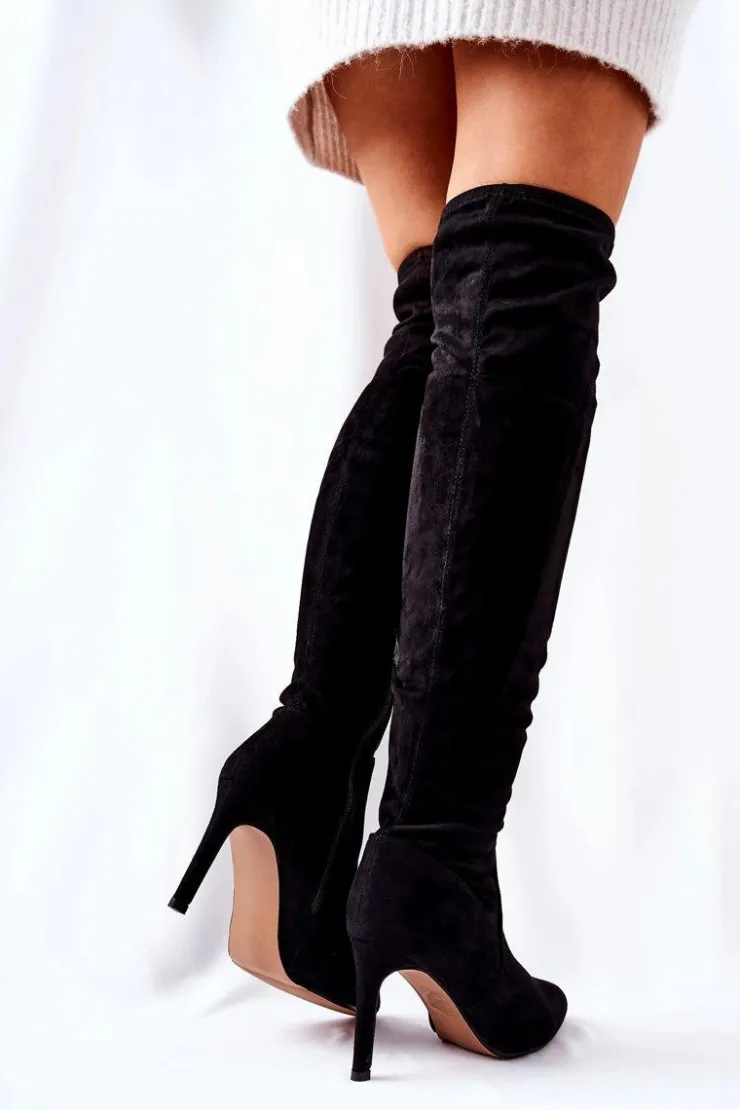 Niezwykłe kozaki za kolano zostały wykonane z zamszowej eko skóry. Zapinane na suwak w dolnej części cholewki. Obcas w postaci szpilki. Usztywniana ocieplana cholewka na wysokości stopy. Koniecznie musisz mieć ten model w swojej garderobie! Nie czekaj zanim znikną! Przy wyborze rozmiaru prosimy kierować tabelą rozmiarów.