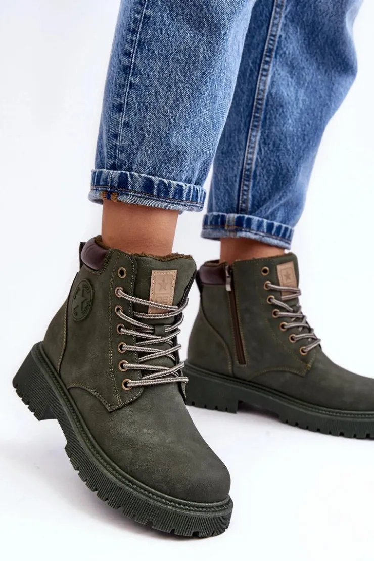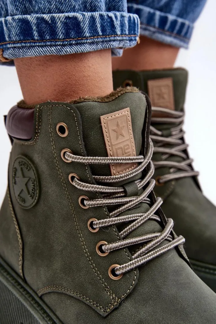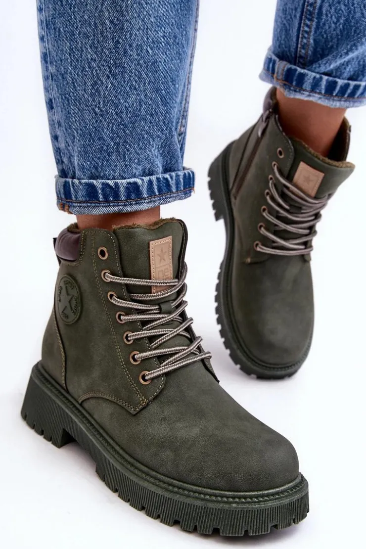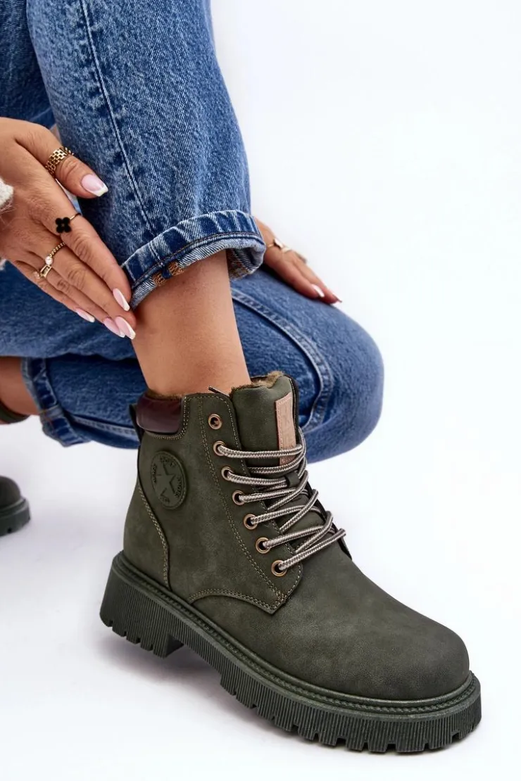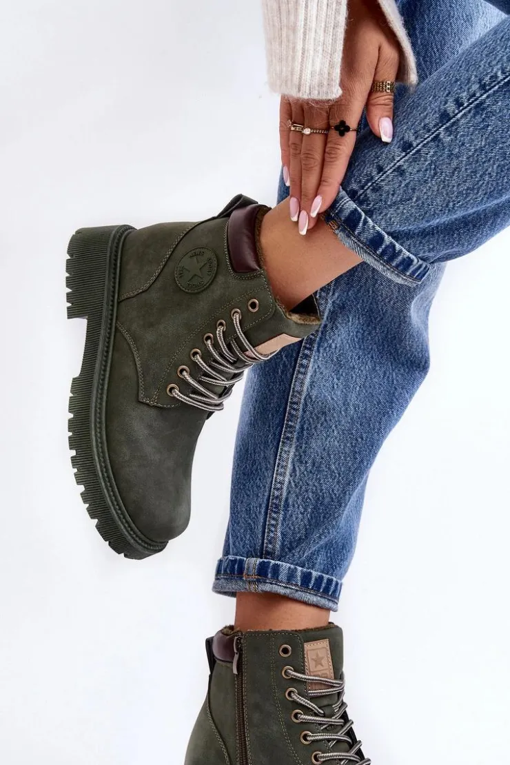 Botki w stylu traperów idealnie sprawdzą się na chłodniejsze dni! Zostały wykonane z eko skóry. Posiadają klasyczne sznurowanie oraz suwak z boku cholewki. Model z dodatkowo usztywnianym zapiętkiem. Ocieplone wewnątrz miłym w dotyku kocem obuwniczym. Trapery osadzono na delikatnej platformie oraz płaskim obcasie. Przy wyborze rozmiaru prosimy sugerować się tabelą rozmiarów.