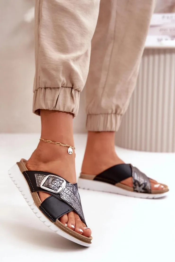 Klapki damskie od marki Inblu. Osadzone na delikatnym koturnie. Wykonane z wysokiej jakości materiałów. Wkładka jest profilowana oraz dostosowana do anatomicznego kształtu stopy. Przy wyborze rozmiaru prosimy sugerować się tabelą rozmiarów.