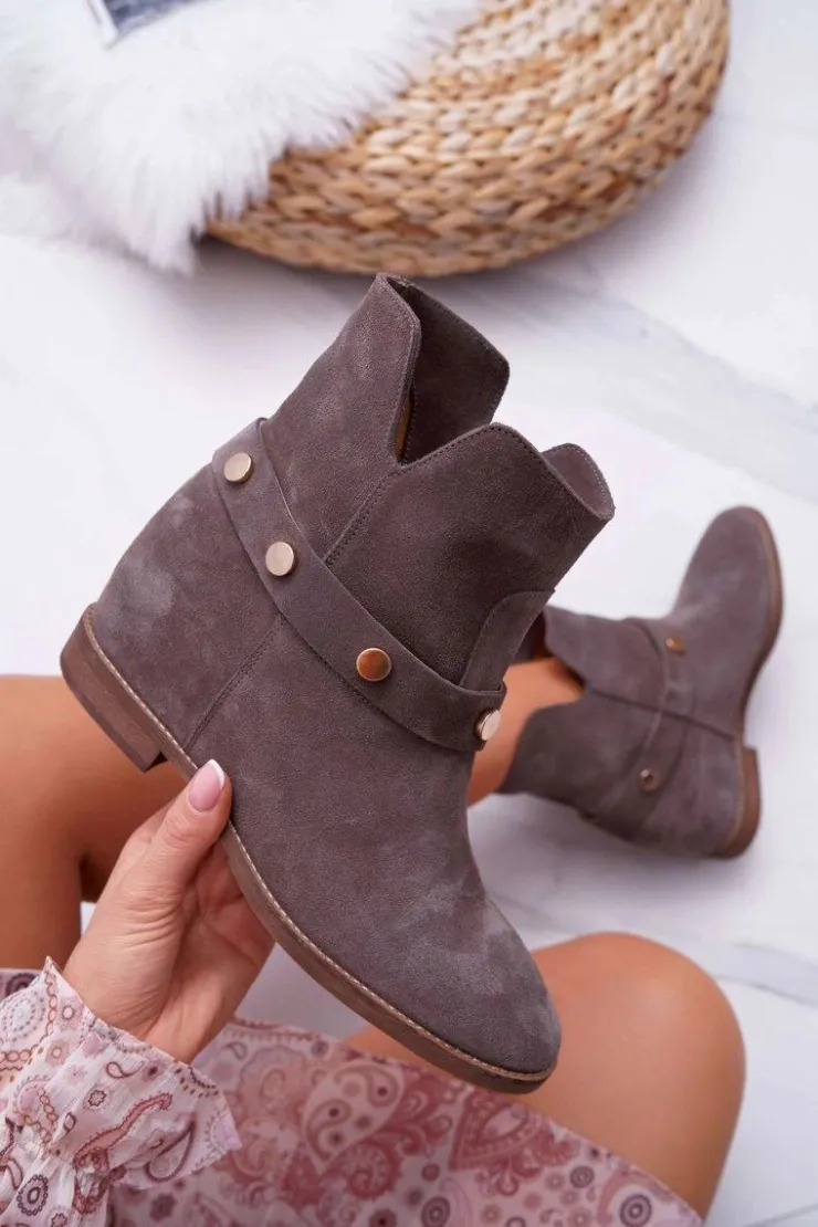 Best Laura Messi Botki Damskie 1890 Skóra Zamsz Szare Darmah