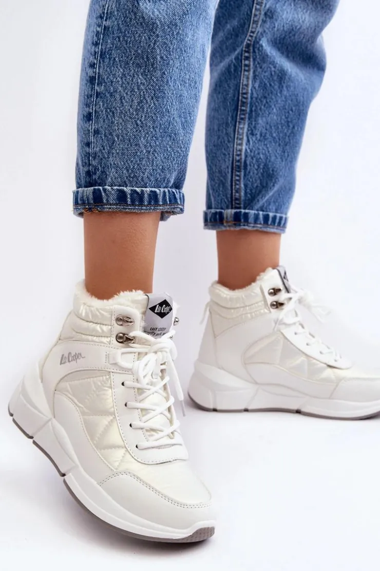 Klasyczne botki damskie marki Lee Cooper zostały wykonane z połączenia eko skóry i materiału tekstylnego. Osadzone na platformie z gumowego tworzywa. Model z cholewką za kostkę. Dodatkowo zapiętek jest usztywniany. Botki posiadają solidne sznurowanie umożliwiające odpowiednie dopasowanie do tęgości nogi. Przy wyborze rozmiaru prosimy sugerować się tabelą rozmiarów.