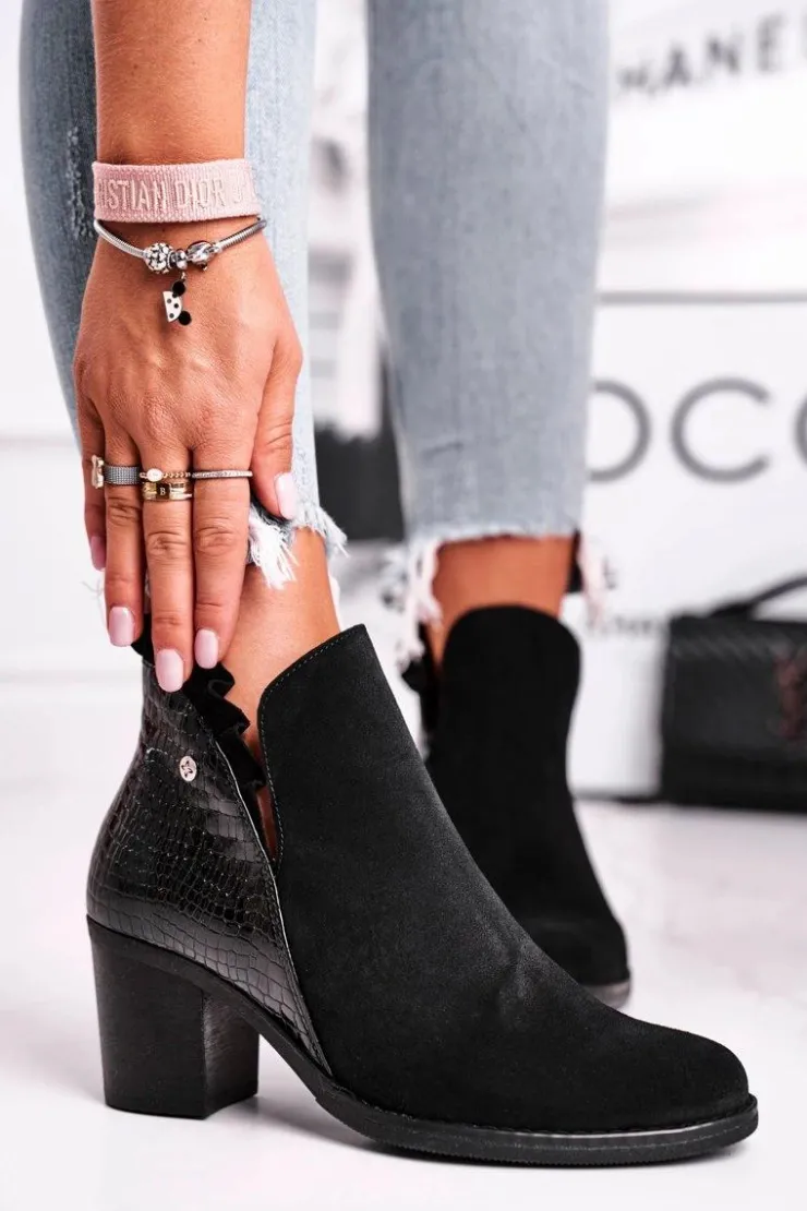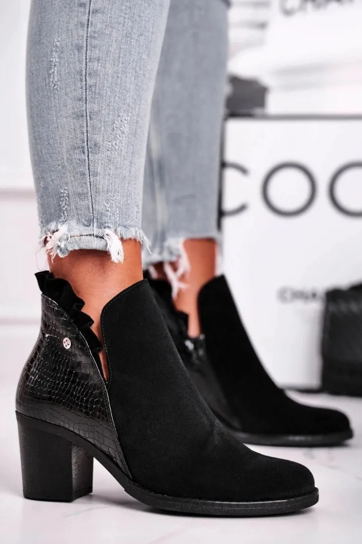 Best Maciejka Damskie Skórzane Botki Na Słupku Czarne 04833-01