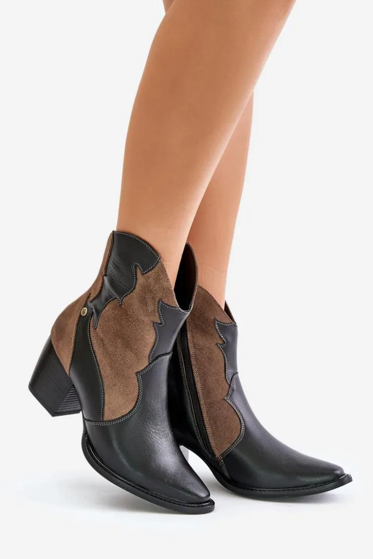 Skórzane botki kowbojki marki Maciejka to stylowy wybór dla miłośniczek mody. Wykonane z wysokiej jakości skóry naturalnej, wyróżniają się szpiczastymi noskami, które nadają im charakterystyczny, elegancki wygląd. Lekko ocieplane, doskonale sprawdzą się w chłodniejsze dni, zapewniając jednocześnie komfort i modny wygląd. To idealna propozycja do wielu stylizacji. Przy wyborze rozmiaru prosimy sugerować się tabelą rozmiarów.
