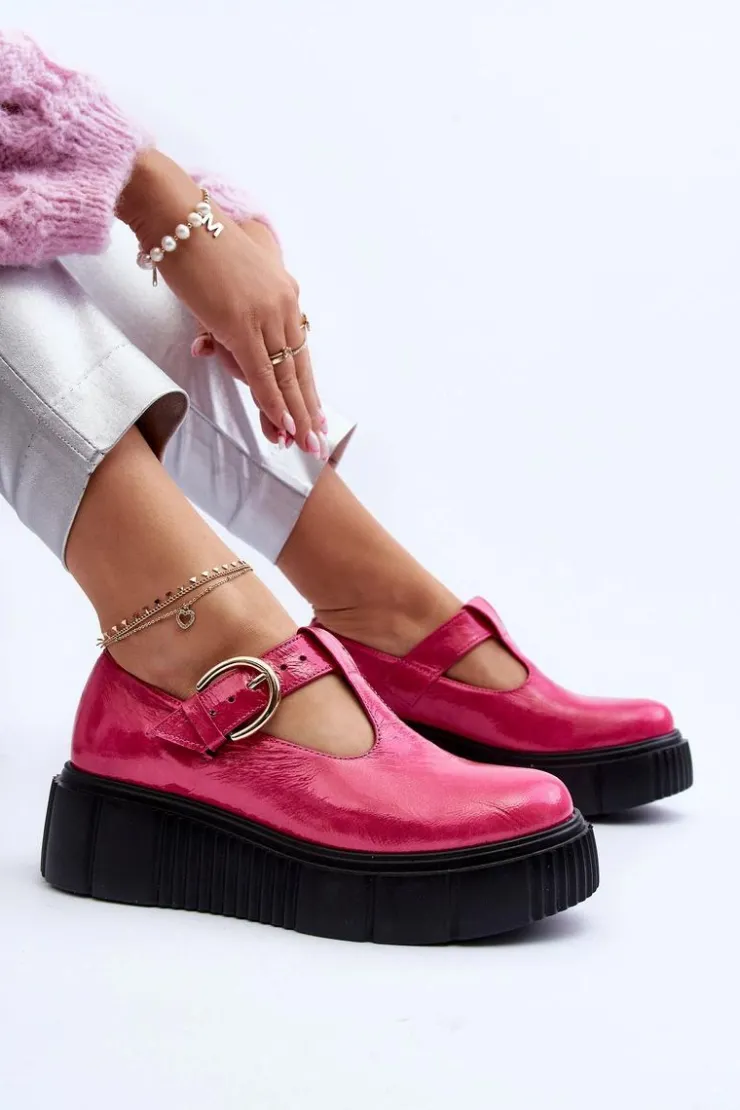 Modne półbuty damskie posiadają masywną platformę ze żłobieniami po bokach. Cholewka przed kostkę została wykonana z naturalnej skóry. Półbuty te posiadają usztywniany zapiętek. Zapinane z boku cholewki na klamrę z regulowanym paskiem. Ten model świetnie podkreśli Twoje stylizacje! Musisz go mieć! Przy wyborze rozmiaru prosimy sugerować się tabelą rozmiarów.